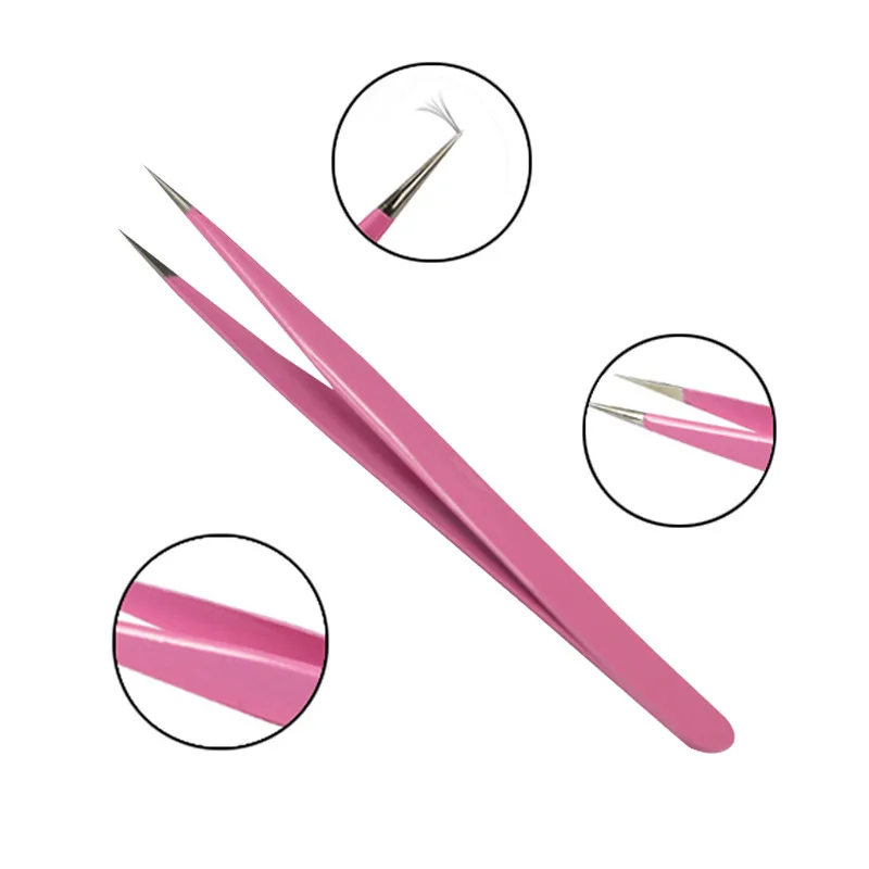 Пинцет для наращивания ресниц из нержавеющей стали Розовый прямой и...