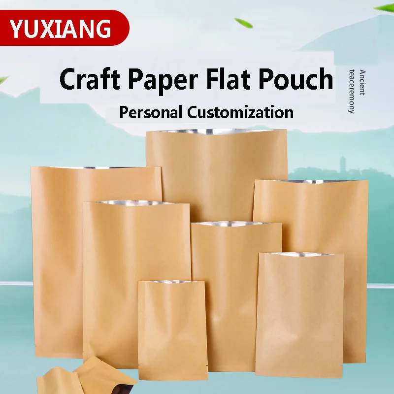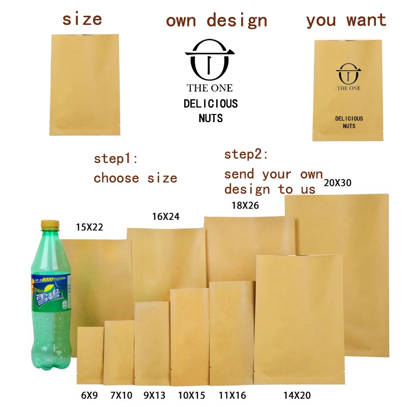 100 шт./лот крафт бумажный плоский мешок без молнии сделанный логотип напечатанный на заказ упаковочные пакеты