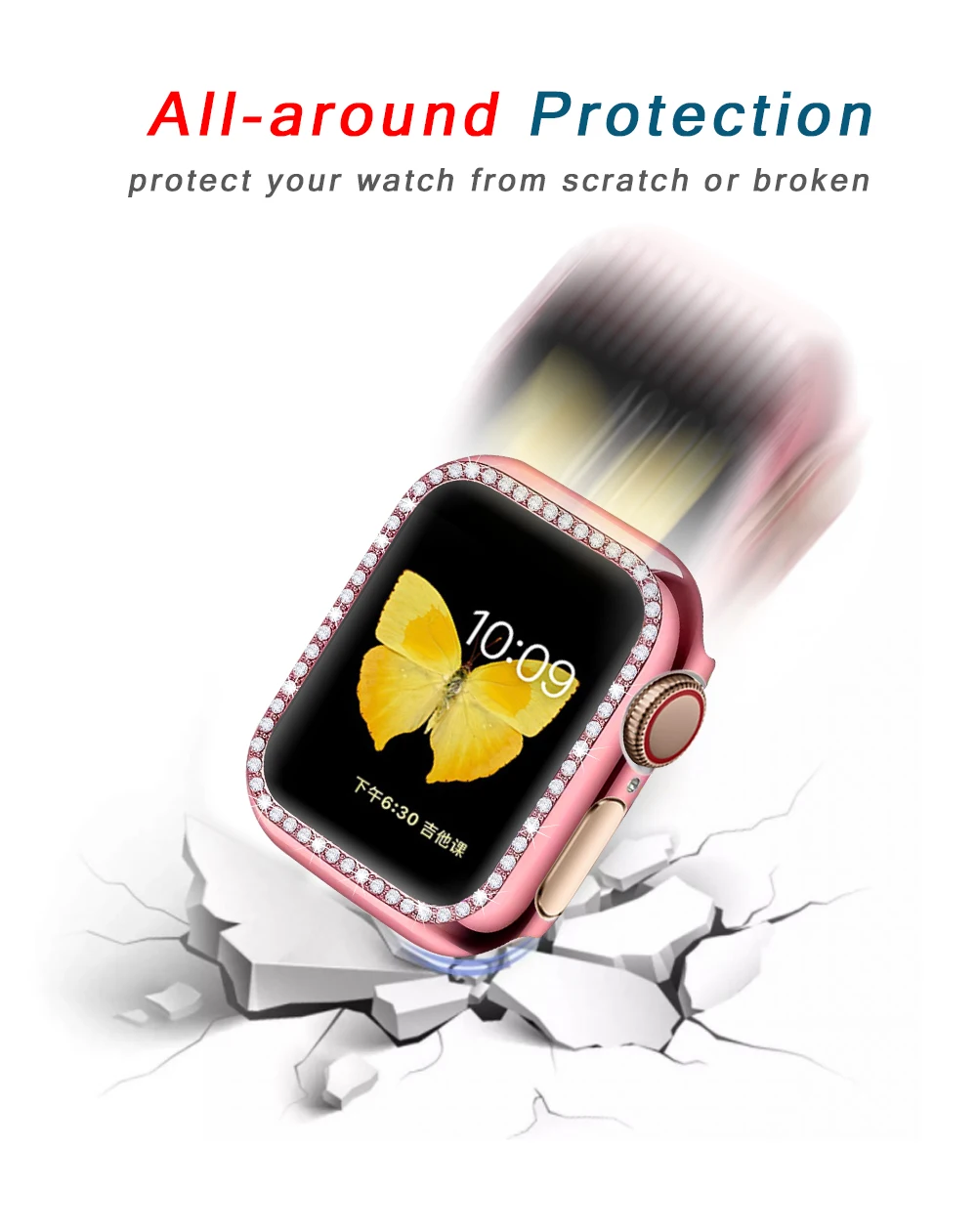 Чехол со стразами для Apple watch band 5, 4, 3, 2, 1, защитный чехол-бампер для iwatch 44 мм, 40 мм, 42 мм, 38 мм