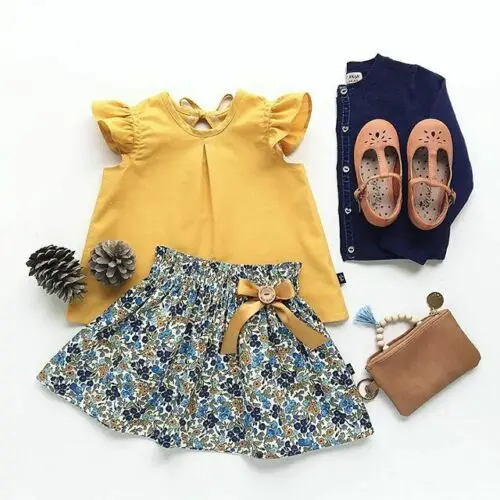 Комплект одежды для маленьких девочек, рубашка с коротким рукавом и...