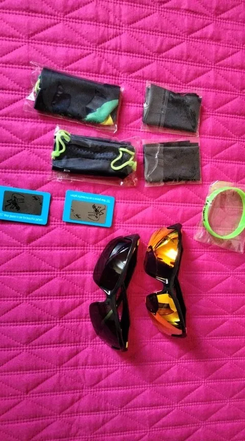 Превосходные очки. Как на фото. С браслетом, тканью и чехлом!! Спасибо, спасибо.