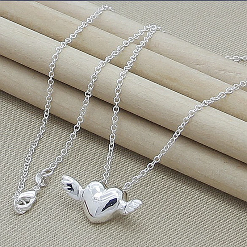 Ожерелье женское из серебра 925 пробы с крыльями ангела и сердцем