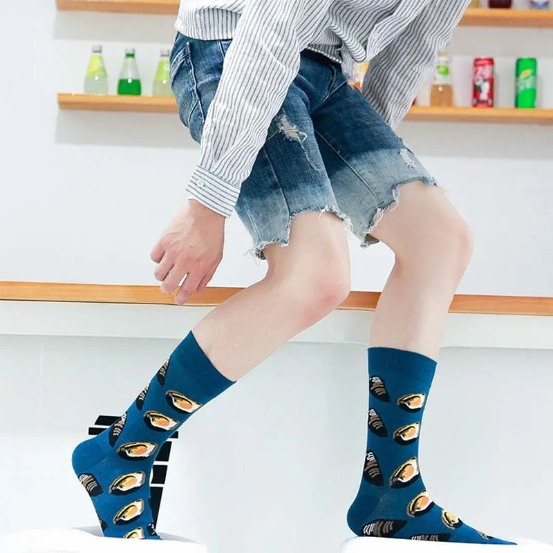 Носки мужские, хлопковые, хипстерские, с забавными листьями, в стиле Харадзюку