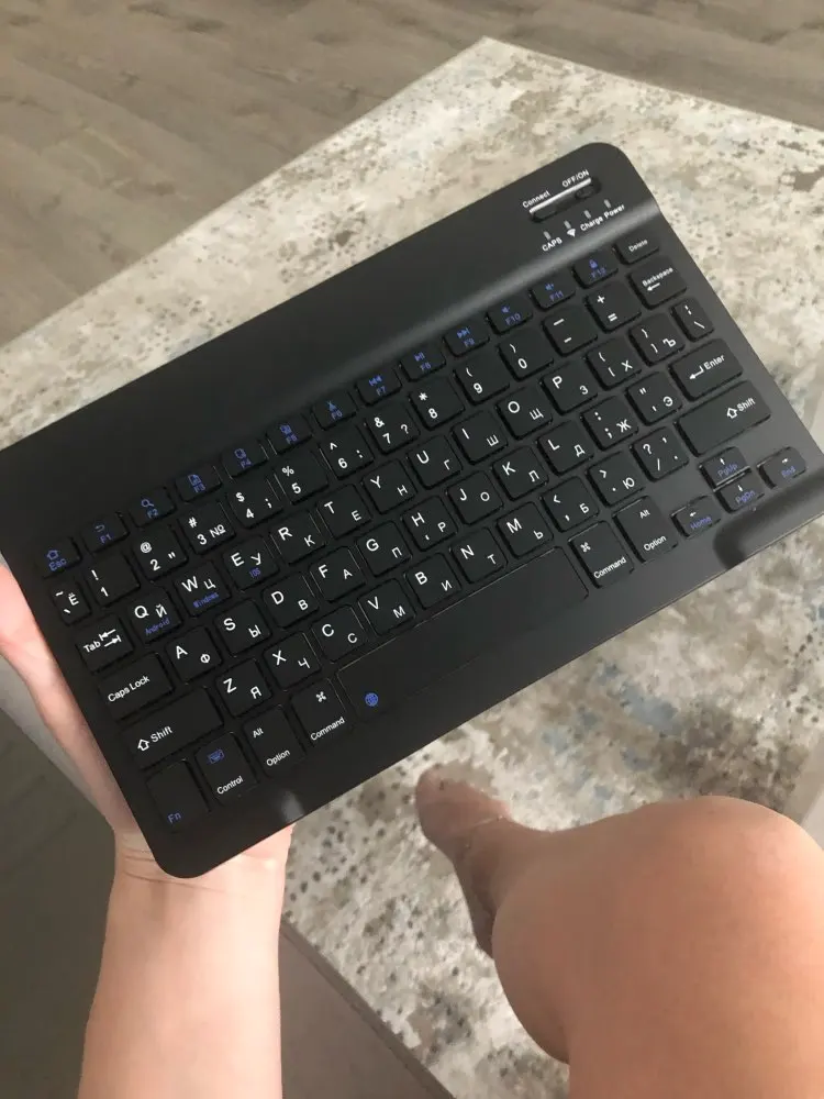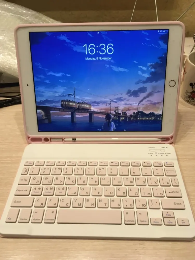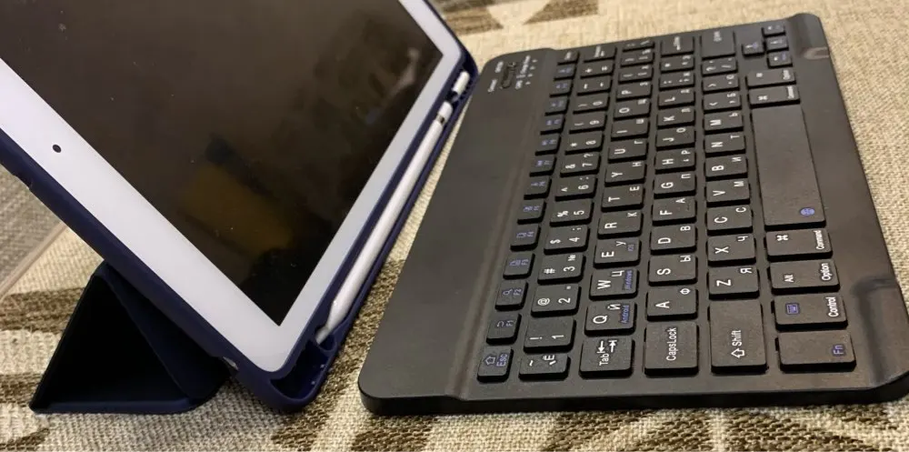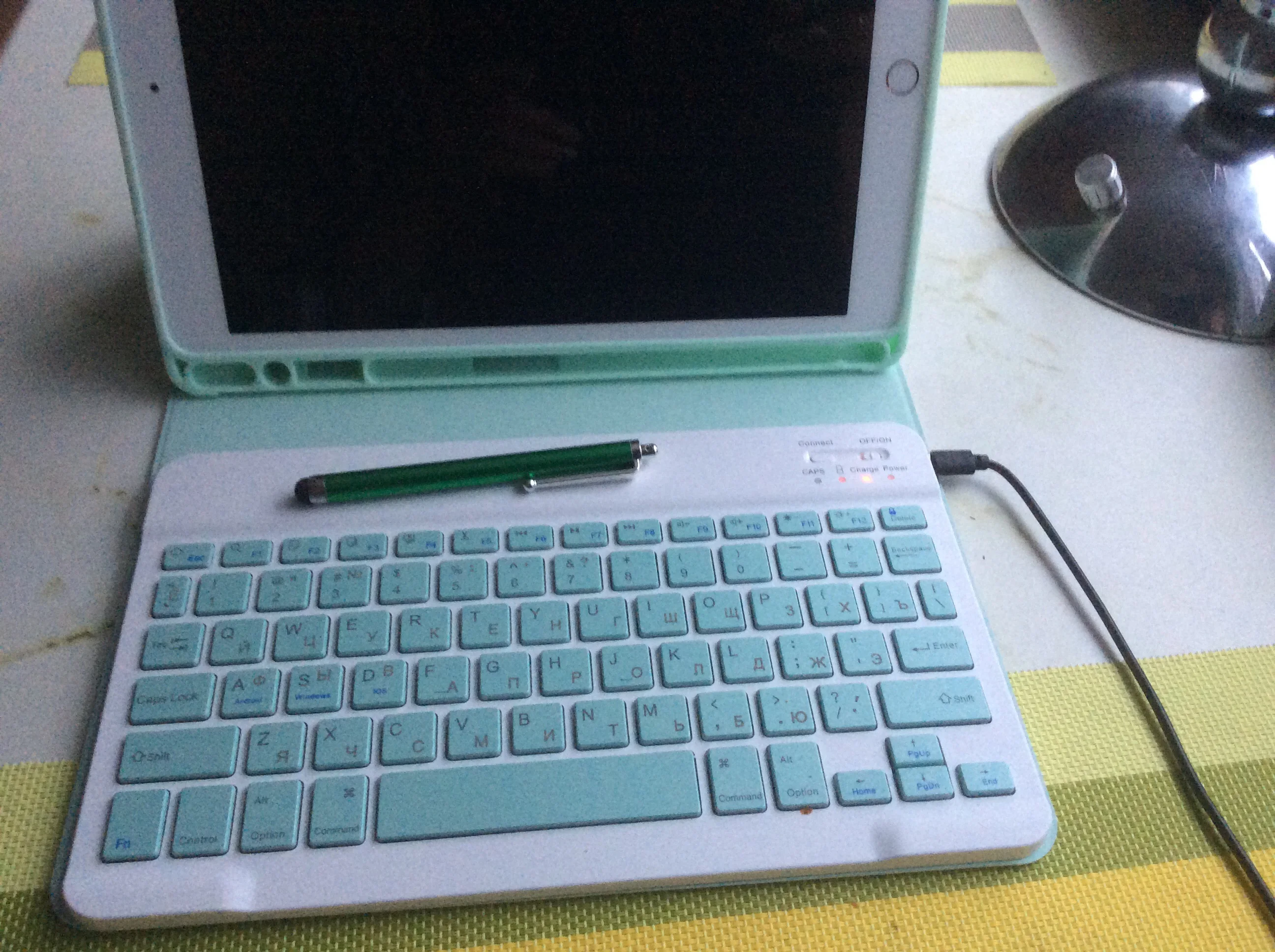 Клавиатура супер! Очень хорошая. Требуется приноровиться конечно, но терпение и труд все перетрут )). Осилил несколько листов курсовика. Все супер. Жаль одного, что не взял ПРОСТО клавиатуру, так как чехол не очень хороший: 1. Громоздкий, тяжёлый. 2. Гранями отслаивает защитное стекло. 3. Очень неудобная и какая-то хлипкая конструкция в закрытом виде. 4. Крышка при закрытии не блокирует экран. В общем на выброс его. Параллельно заказал простой чехол с держателем для ручки, тонкий, легкий и удобный. К нему на крышку примагнитил Клаву и все)) очень удобно, так как Клава по сути не всегда нужна. Фото с «не родным» чехлом. P.S Если есть возможность, берите отдельно клавиатуру