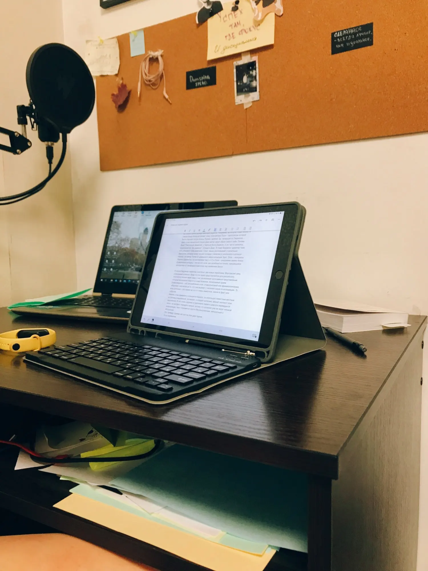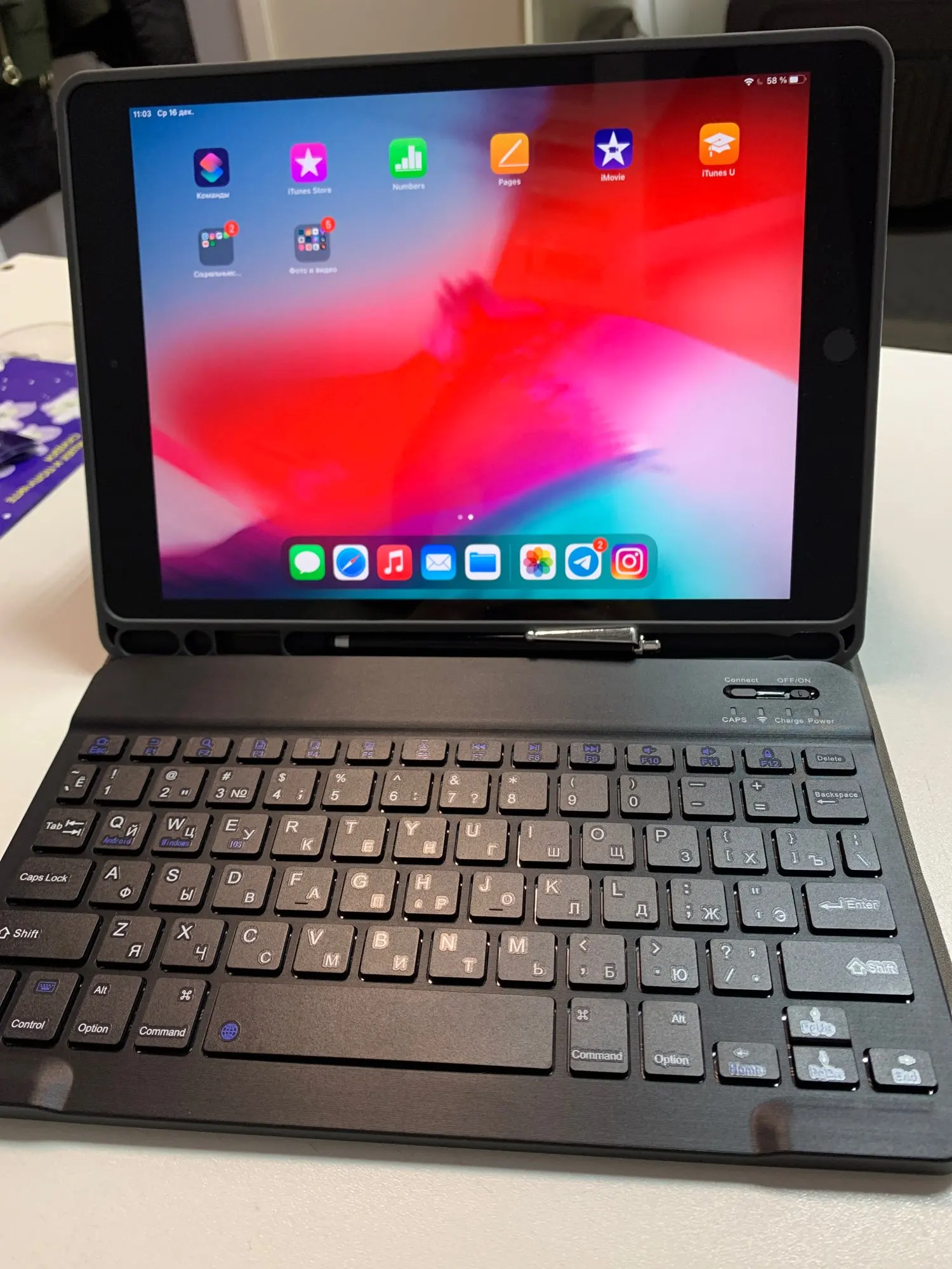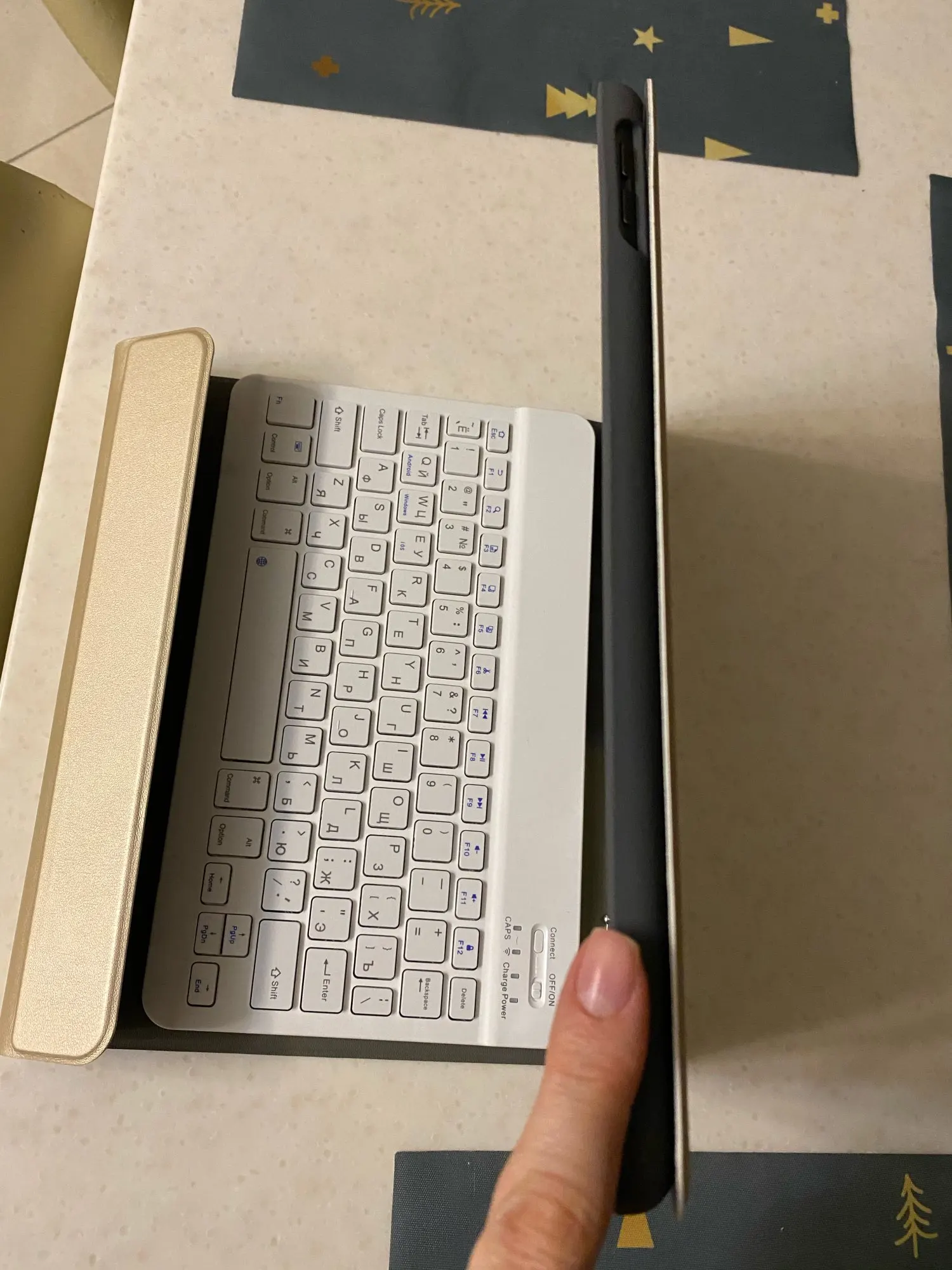 Клавиатура супер! Очень хорошая. Требуется приноровиться конечно, но терпение и труд все перетрут )). Осилил несколько листов курсовика. Все супер. Жаль одного, что не взял ПРОСТО клавиатуру, так как чехол не очень хороший: 1. Громоздкий, тяжёлый. 2. Гранями отслаивает защитное стекло. 3. Очень неудобная и какая-то хлипкая конструкция в закрытом виде. 4. Крышка при закрытии не блокирует экран. В общем на выброс его. Параллельно заказал простой чехол с держателем для ручки, тонкий, легкий и удобный. К нему на крышку примагнитил Клаву и все)) очень удобно, так как Клава по сути не всегда нужна. Фото с «не родным» чехлом. P.S Если есть возможность, берите отдельно клавиатуру
