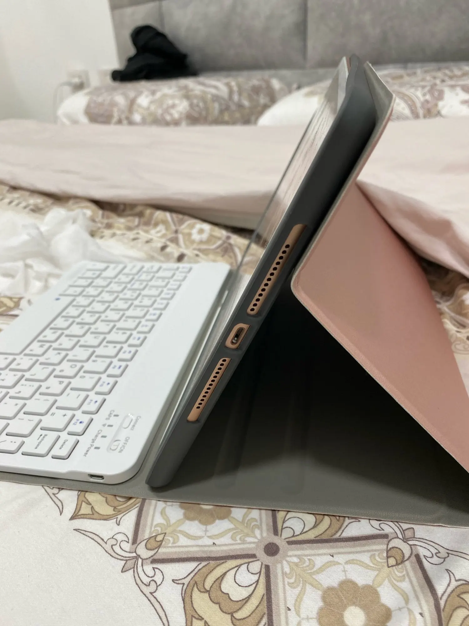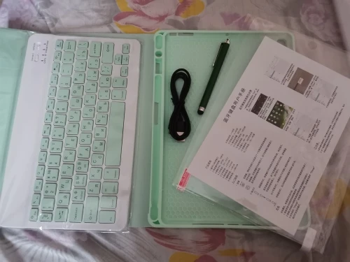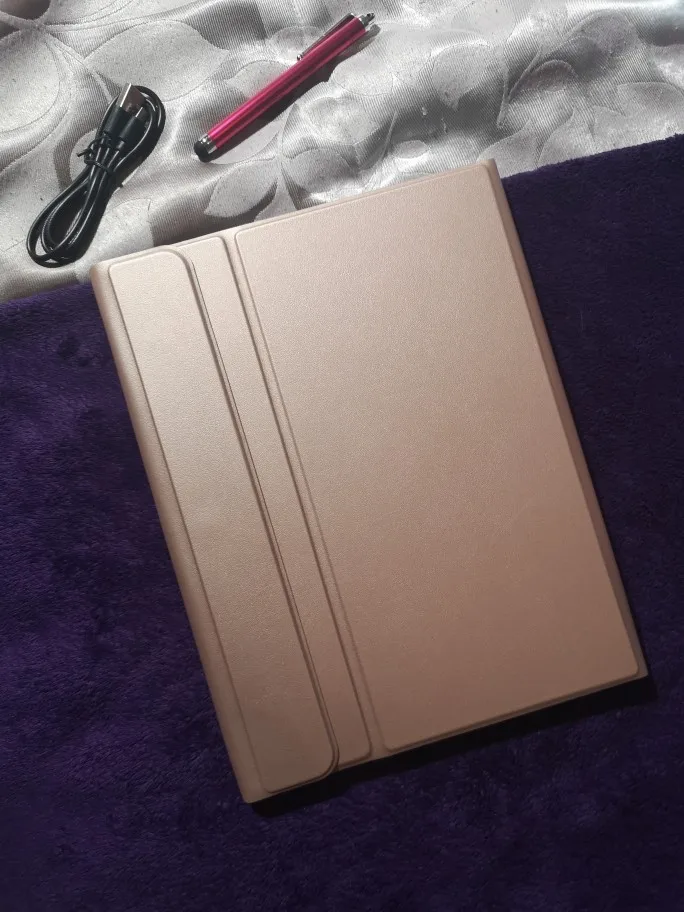 В целом, довольна покупкой. Всё дошло меньше чем за неделю (с учётом того, что я заказала 30 декабря и у всех людей были выходные в честь Нового года), так что доставка очень быстрая, за это огромный плюс. Материал чехла очень приятный, гладкий. В комплекте: чехол, клавиатура, стилус, зарядный провод, защитная плёнка (стоит отметить, что плёнка достаточно хорошая). Для меня клавиатура показалась громкой. Как только касаешься клавиши, она стучит даже без нажатия. При нажатии клавиши стук чуть глушится. А вообще, за свою цену достойно.
