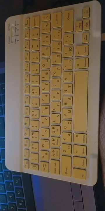 Прекрасная клавиатура. Шустрая, приятная на ощупь. В комплект положили стилус и защитную матовую плёнку. Просто восхитительные агрегаты за свои деньги. Шустро летает на айпаде последнего поколения (8). Берите смело. Доставили за пару дней.