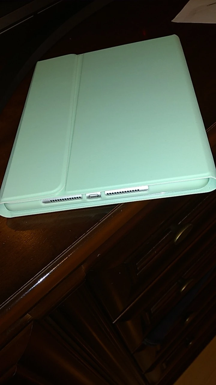 Чехол приятный на ощуп, но очень тяжёлый из-за магнитов. Отлично подошёл к айпаду, сел вплотную. Клавиатура подключается без проблем, все работает. Клавиатура подключается даже к телефону андроид. Чехол не скользит все крепко держится. Приятный цвет. Из минусов только очень долгая доставка до СПб