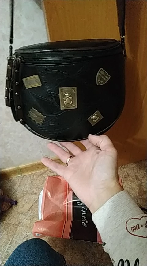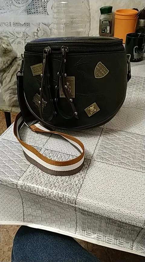 Черная сумка. Мне нравится. Очень вместительная оказалась. Из минусов: "родной" ремень совсем не подходит. Это правда не проблема: есть другие черные сумки и еще заказала другой, какой нравится. Внешнего карманчика тоже нет - еще один минус. Пришла в упаковке без наполнения, просто сплющенная. В результате - залом. Хорошо, что исправился. Смотрится стильно. Рекомендую. Доставка быстрая. Спасибо ему ))