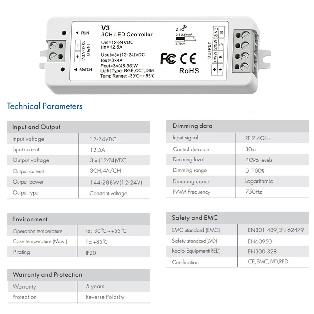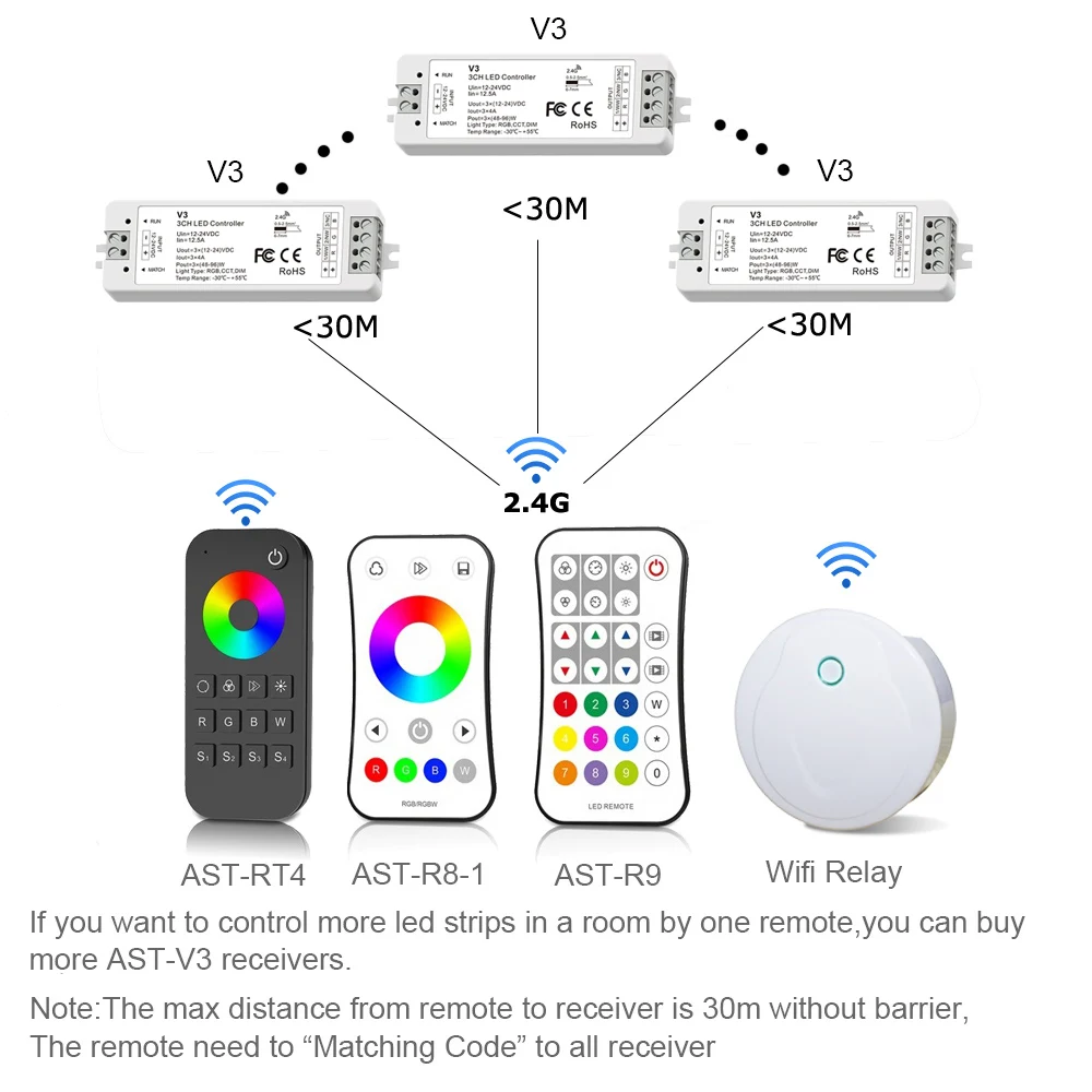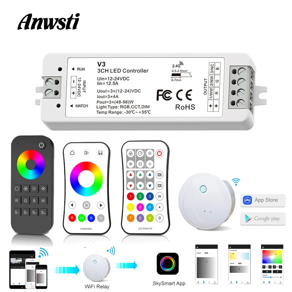 RGB светодиодный контроллер 12 В 24 В DC 12A RF 2,4G беспроводной пульт дистанционного управления Умный дом Wifi RGB управление Лер диммер СВЕТОДИОДНЫЙ светильник
