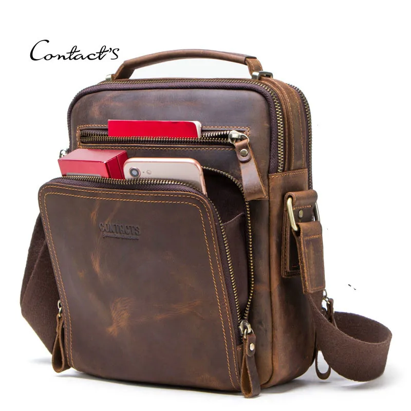 Сумка на плечо мужская из кожи Крейзи Хорс, брендовая Винтажная сумочка-мессенджер, кросс-боди