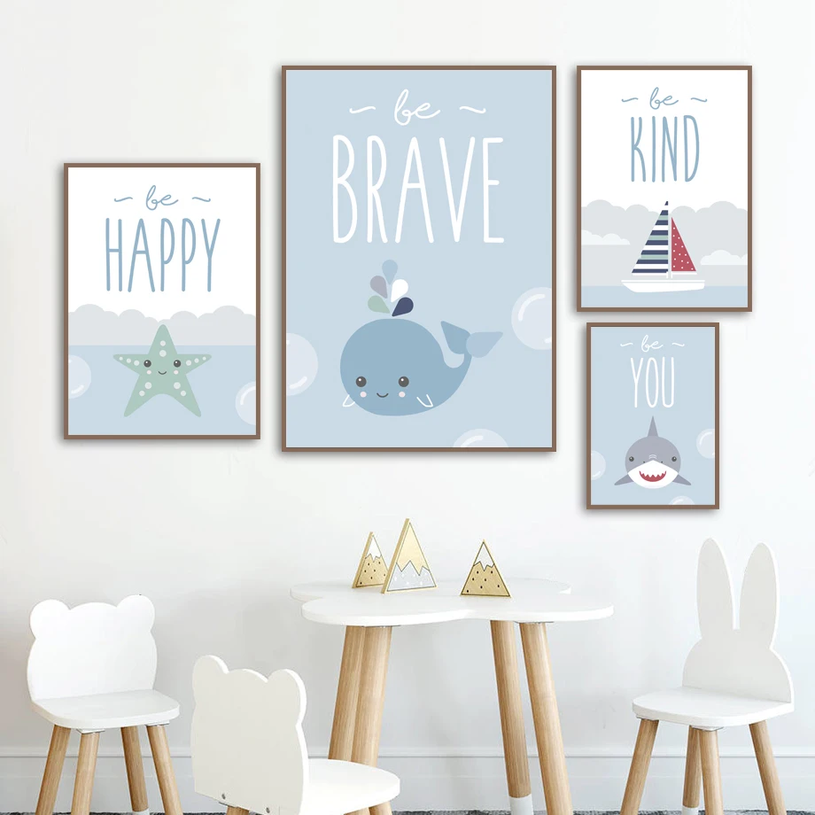 Синий морской Кит Акула Цитата детской стены искусства холст картина скандинавские плакаты и принты настенные картинки для девочек и мальчиков Декор детской комнаты