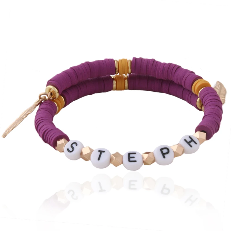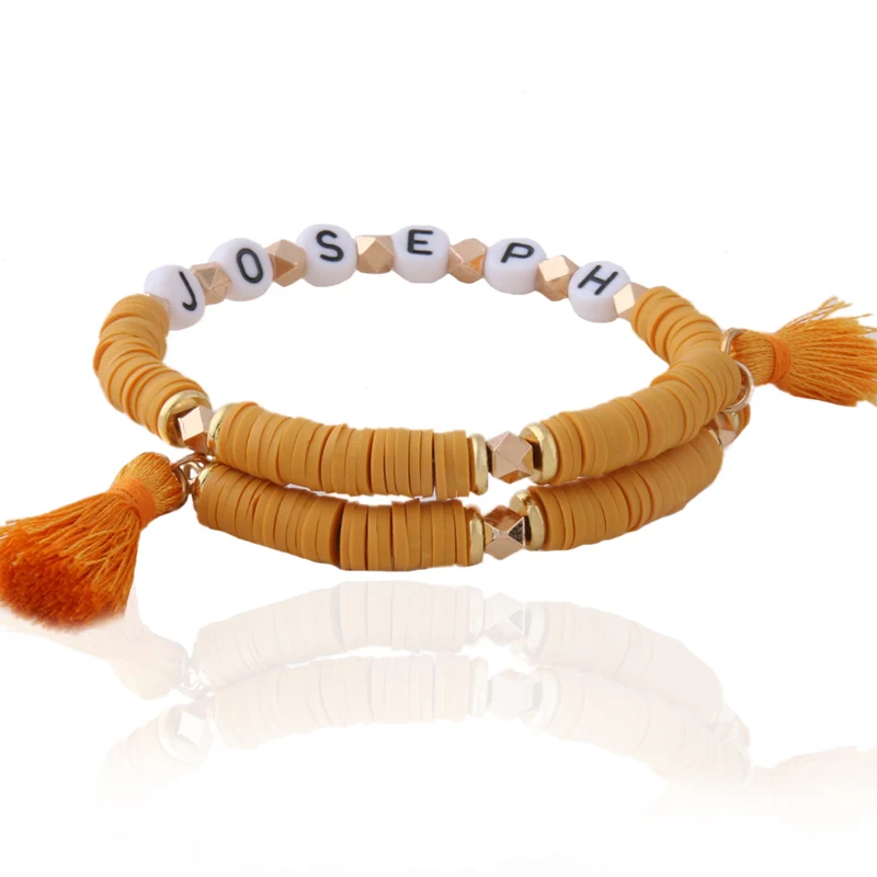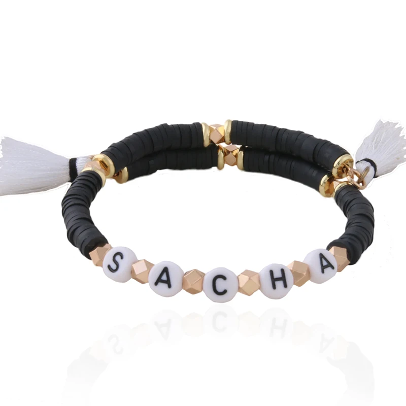Женский браслет из бусин NeeFu WoFu, браслет из мягкой керамики в богемном стиле сделай сам с именем под заказ, ювелирные изделия из нержавеющей стали