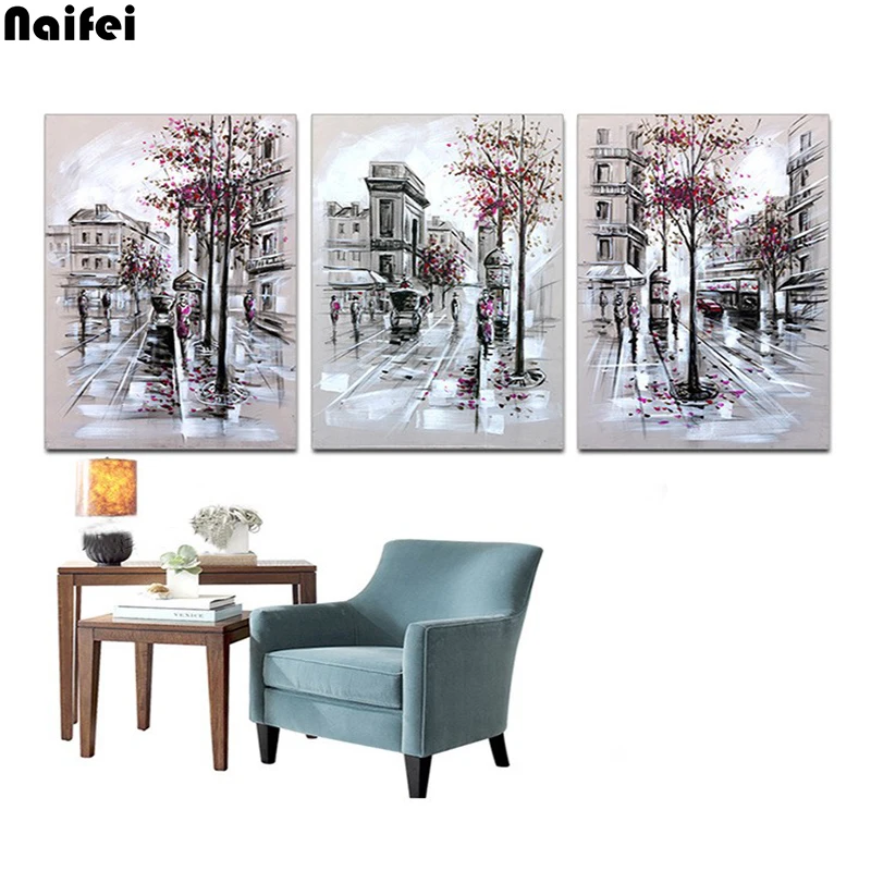 Триптих 5D Diy алмазная живопись "Вид на улицу" 3D Алмазная живопись круглые квадратные Стразы алмазная живопись Вышивка пейзаж