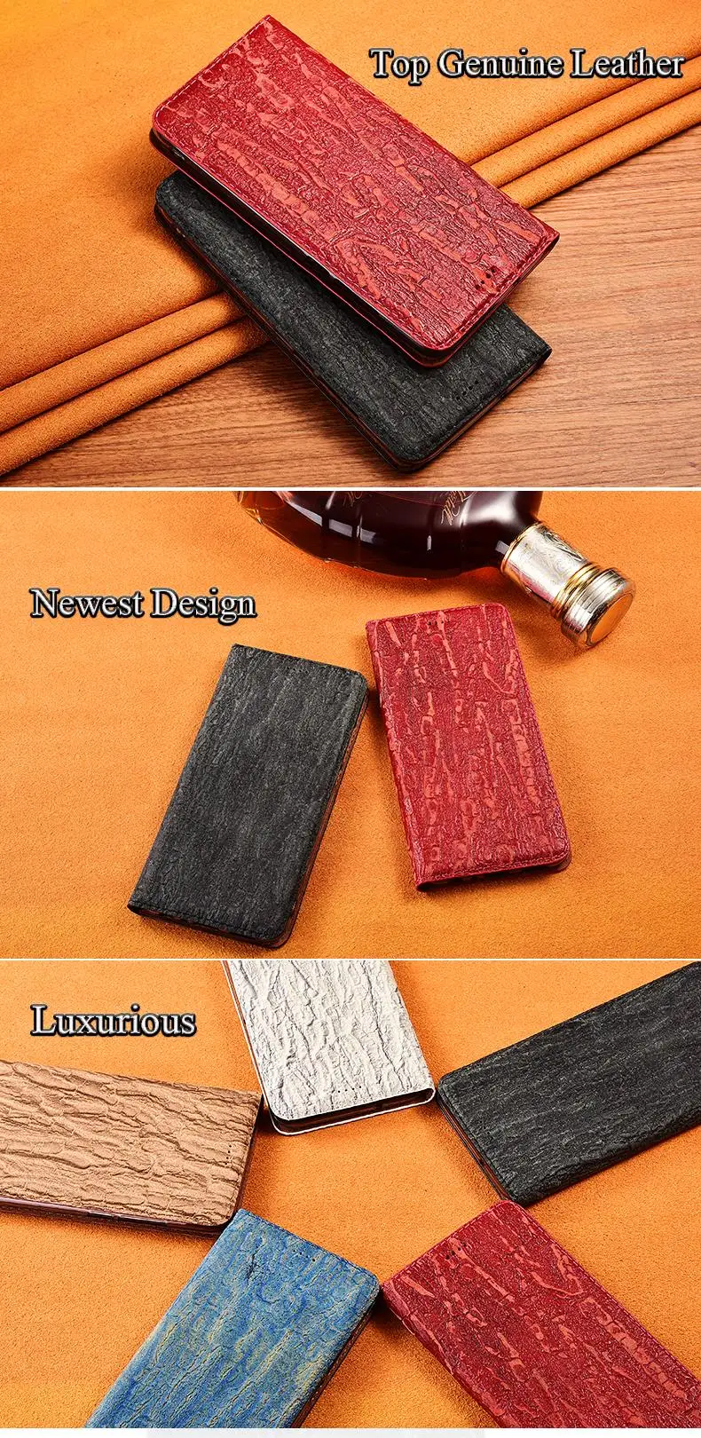Дерево текстуры из натуральной кожи чехол для телефона на магните ч...