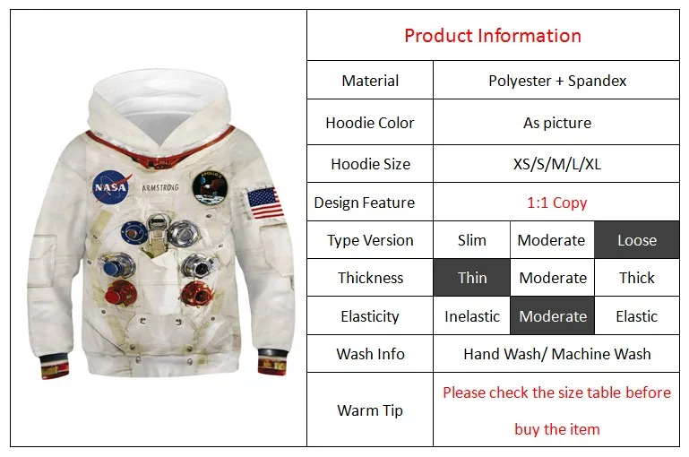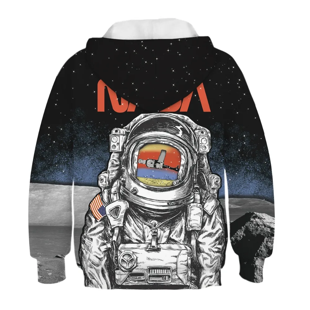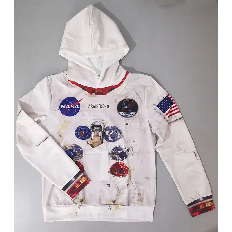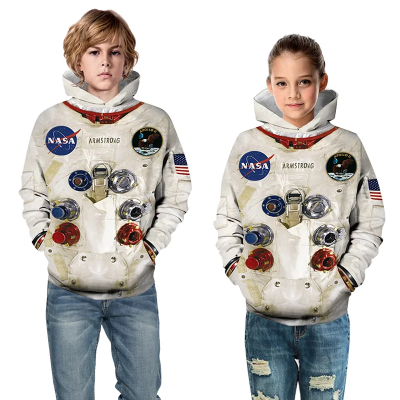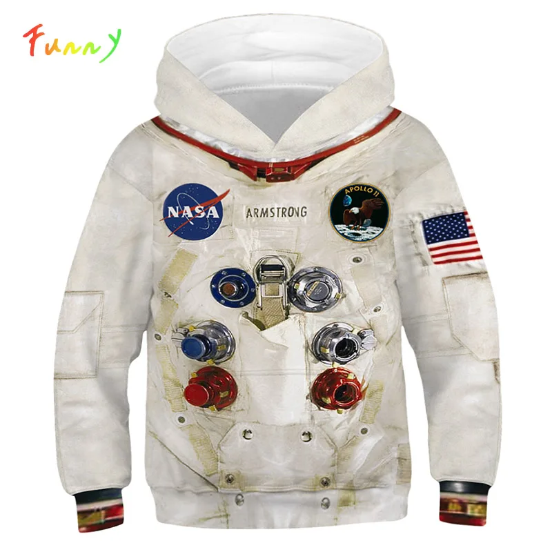 Толстовки для мальчиков ясельного возраста, осень 2019, пальто с капюшоном и длинными рукавами с принтом «Armstrong Spacesuit», унисекс, повседневная детская толстовка с 3D принтом