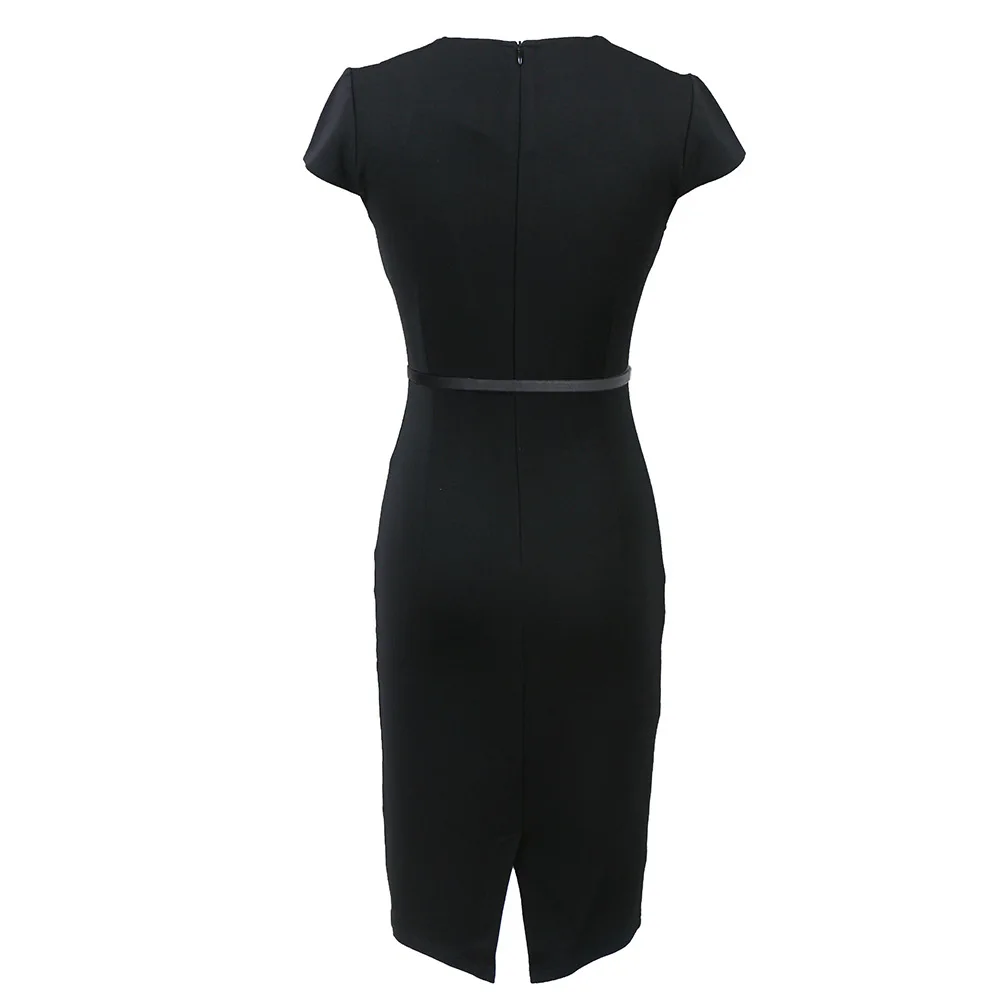 Женское офисное платье средней длины с коротким рукавом, элегантное...