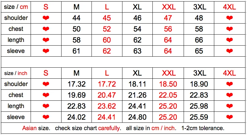 Пожалуйста, проверьте таблицу размеров и измерьте вашу куртку, как показано ниже.