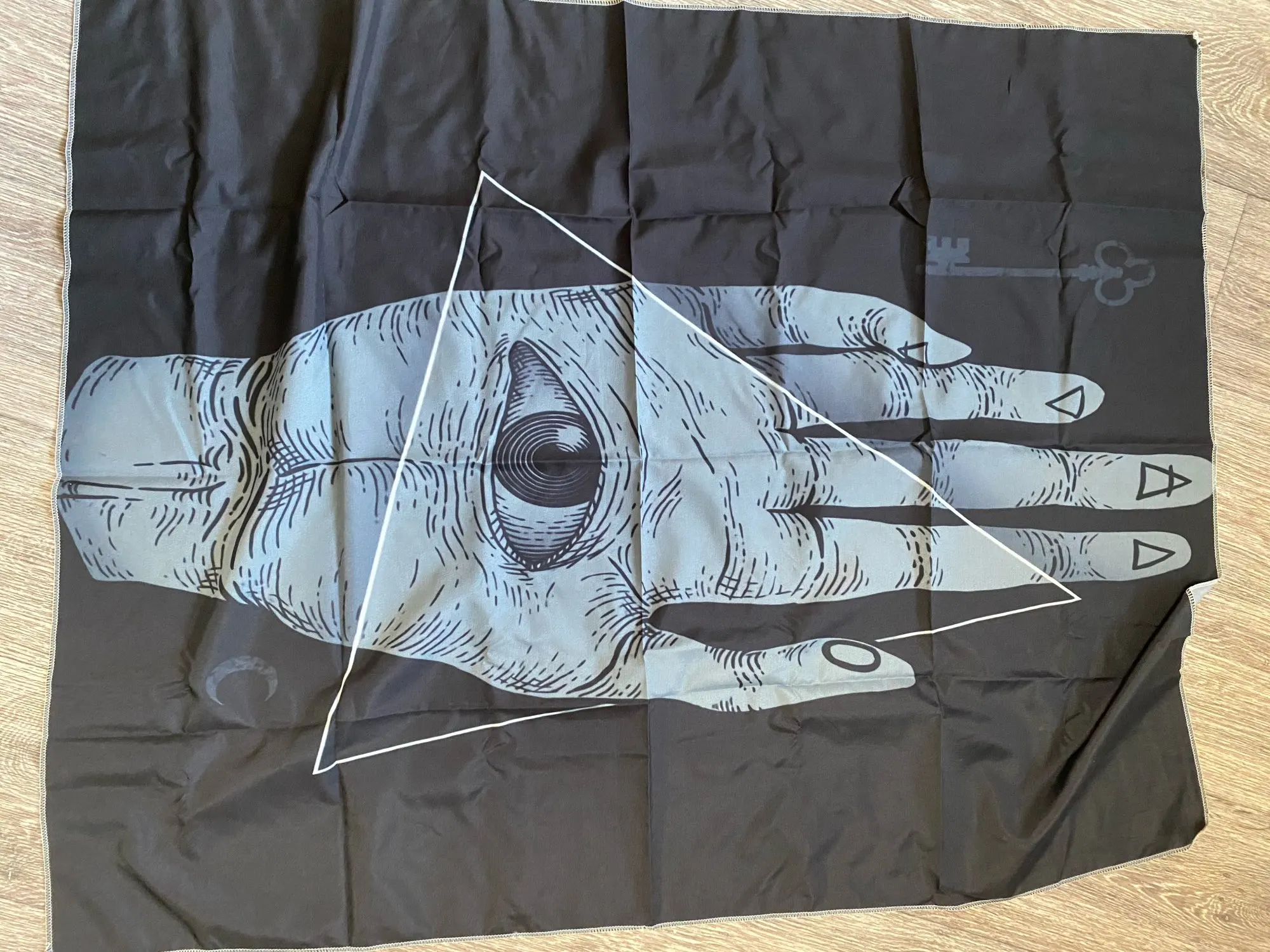 Материал хорошего качества, принт немного размытый, но выглядит хорошо с расстояния 1-2 м. Он поставляется с 3 висящими растворами, зажимами и двойной лентой. Очень красиво