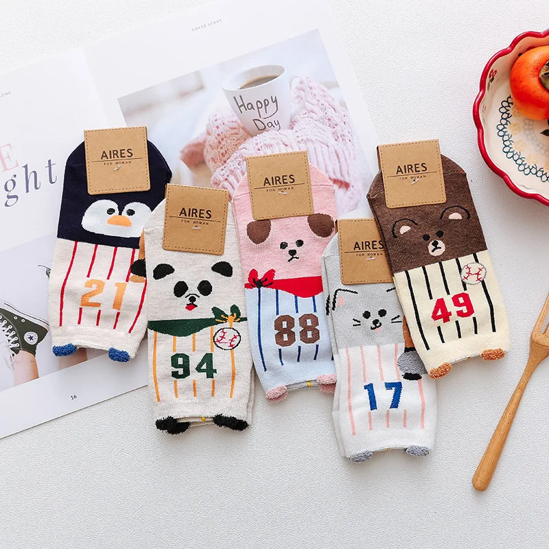 Женские носки, 5 пар, комплект, женские Носки с рисунком Шиба 4 собаки, хлопковые забавные носки с героями мультфильмов, короткие носки Harajuku Kawaii Soxpsons, 1 партия, Sox