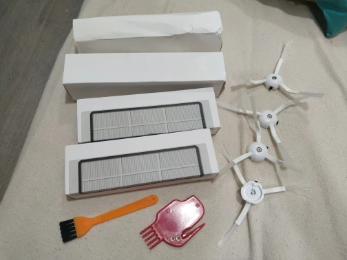 Куплено за 820р. окт 2020г. доставка 1.5 месяца. Фильтры и турбо щётка к роборок е4 подходят. Щётка похожа на оригинал. фильтры по виду отличаются, возможно аналог, но подходят. Щетки трехлопостные по виду подходят, пока не ставил. С продавцом не общался ибо не надо было. Коробки были мятые, но содержимое цело. Турбощетку надо чистить как минимум через раз, фильтр силу каждый раз