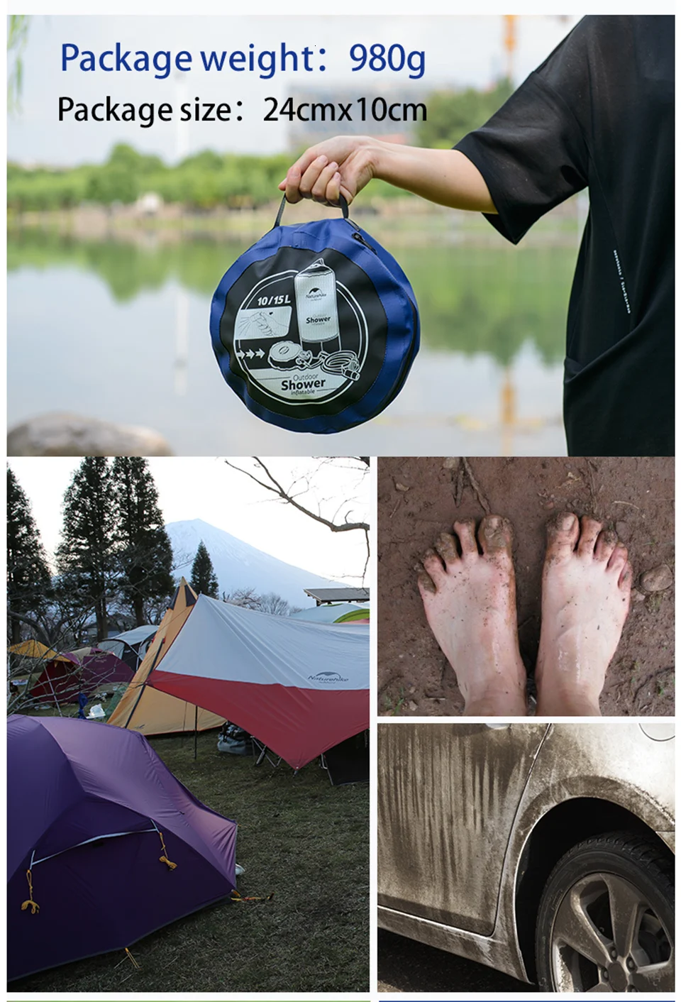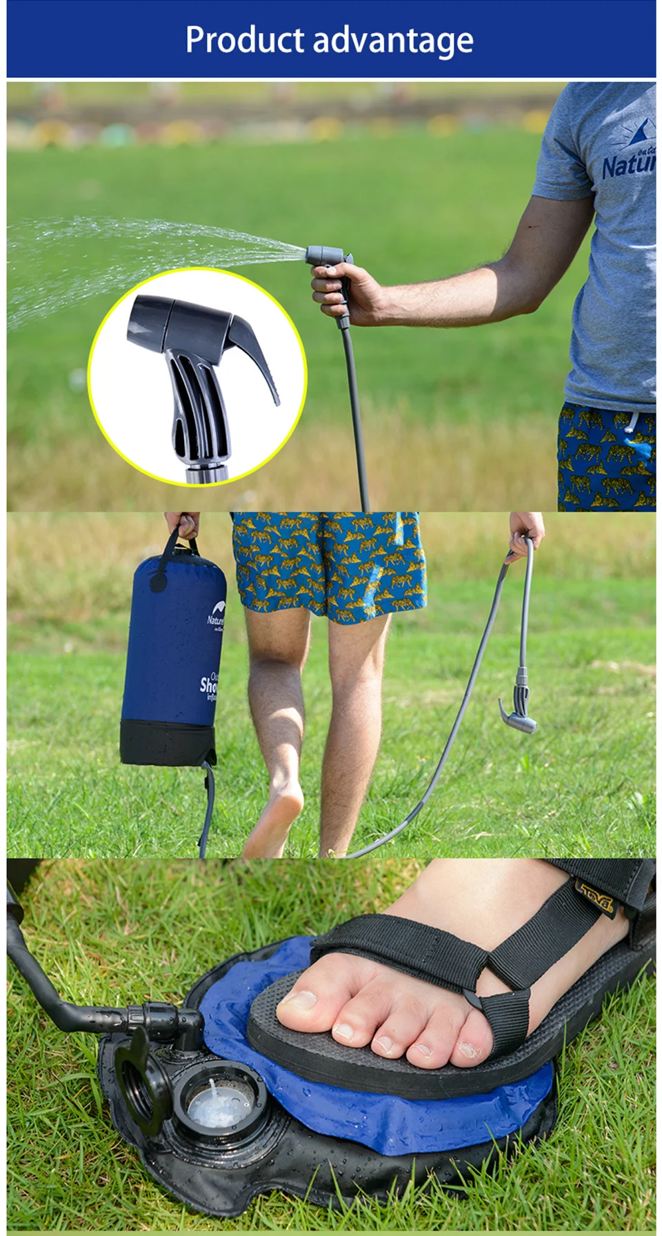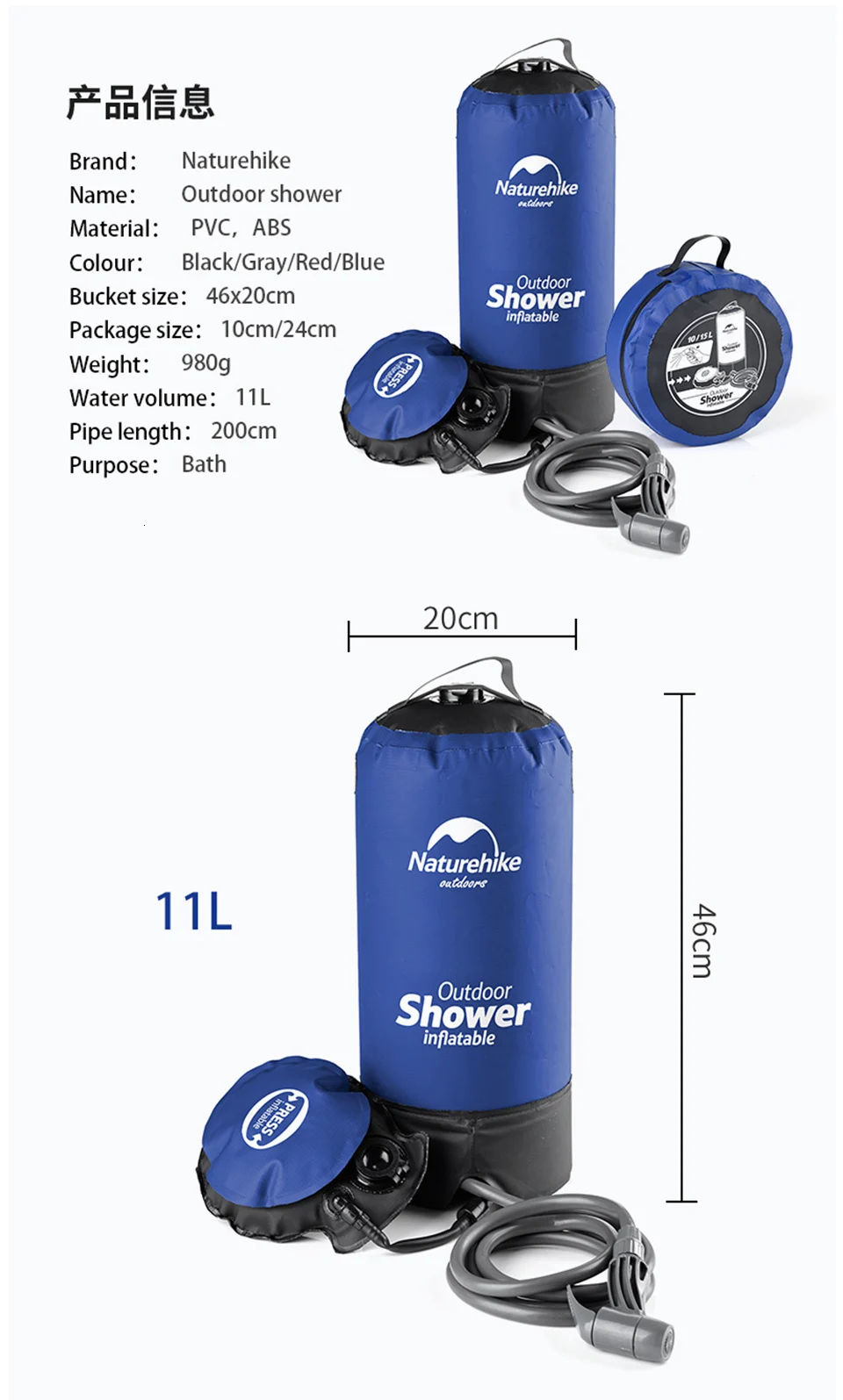 Портативный надувной душ NatureHike 11 л, для отдыха на открытом воздухе, душа, воды, мешок для купания