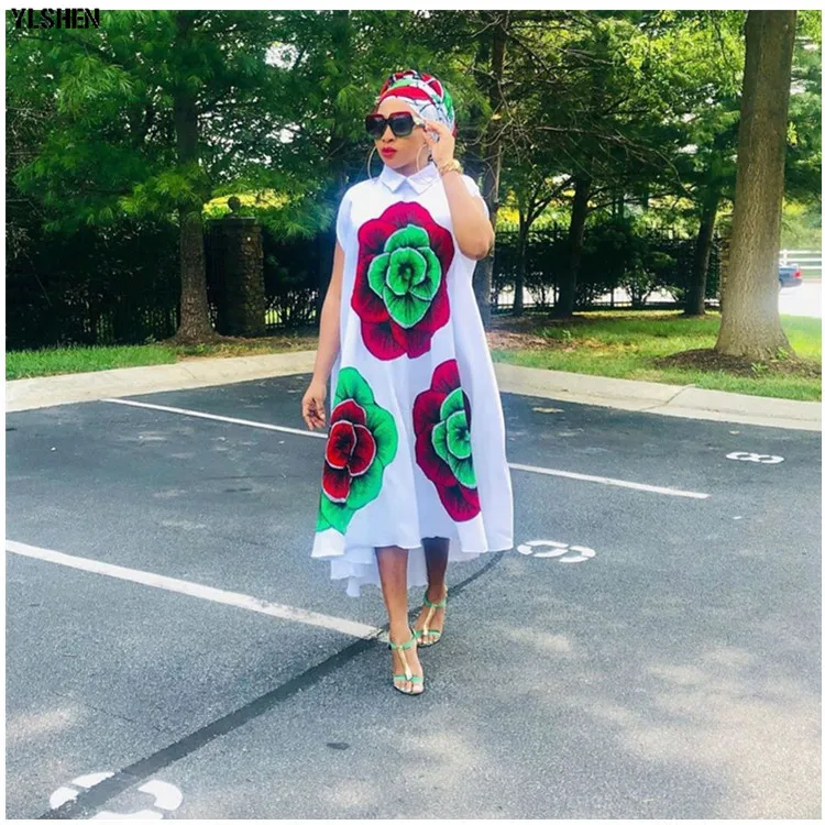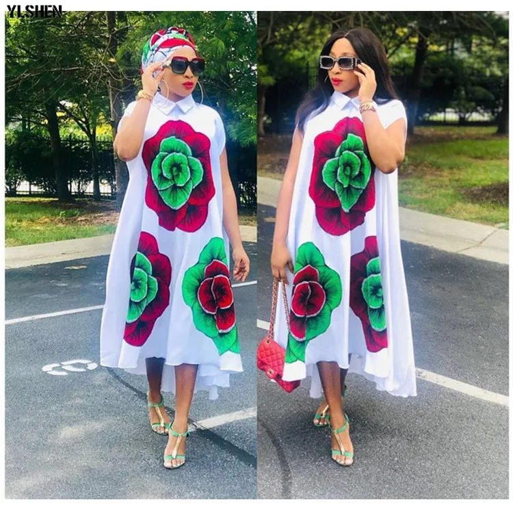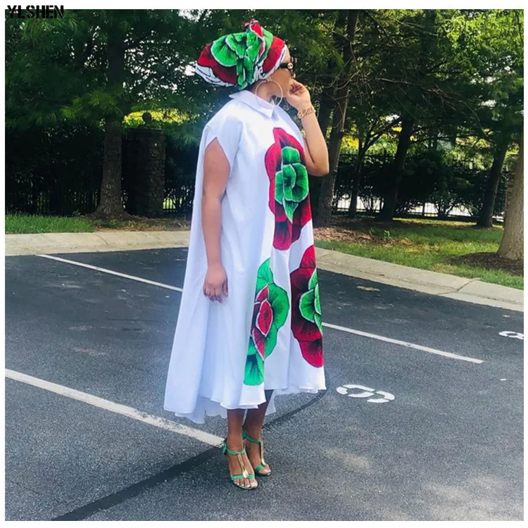 Белое Африканское Платье с принтом для женщин, новинка 2019, африканская одежда, платья Дашики, Анкара, традиционное Африканское длинное платье-рубашка Bazin, одежда для женщин высокого качества, модное Африканское платье для женщин 2019