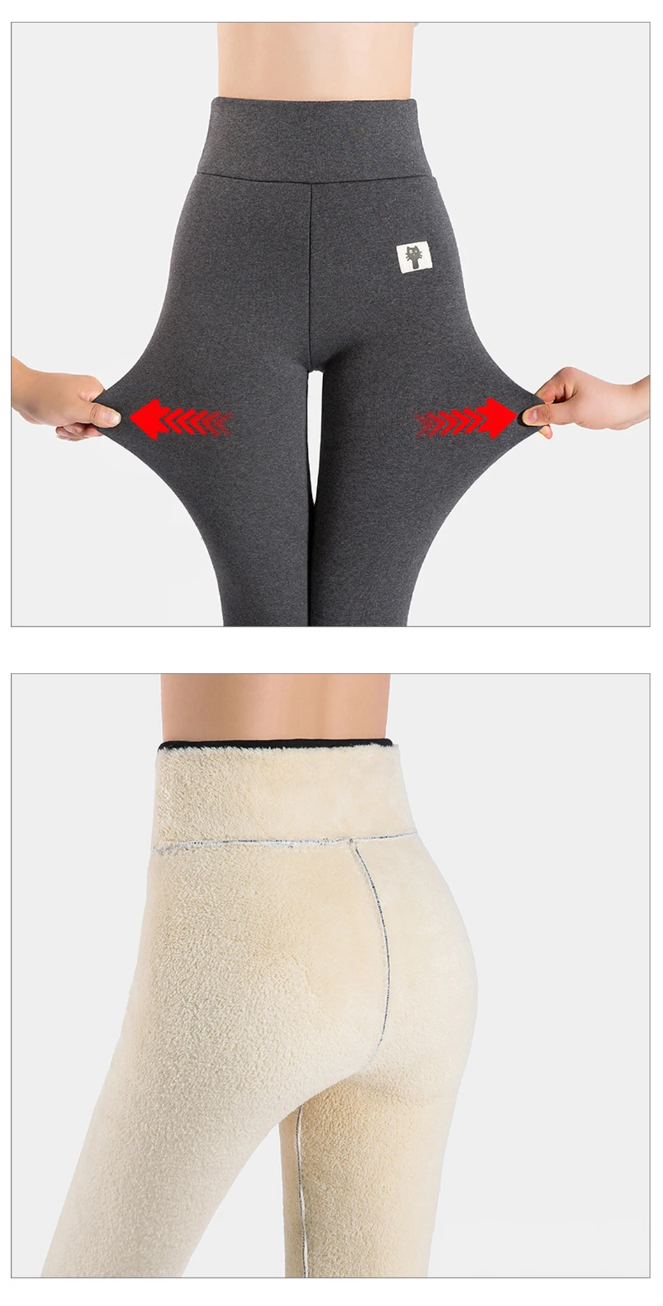 Зимние теплые леггинсы, бархатные плотные брюки из овечьей шерсти, ...