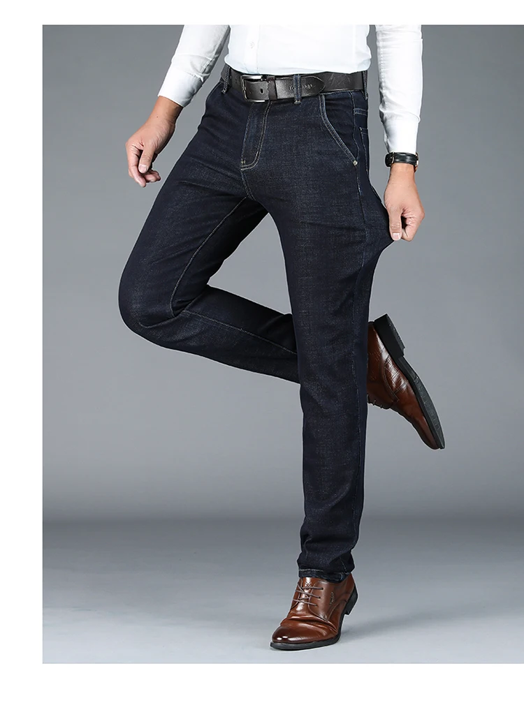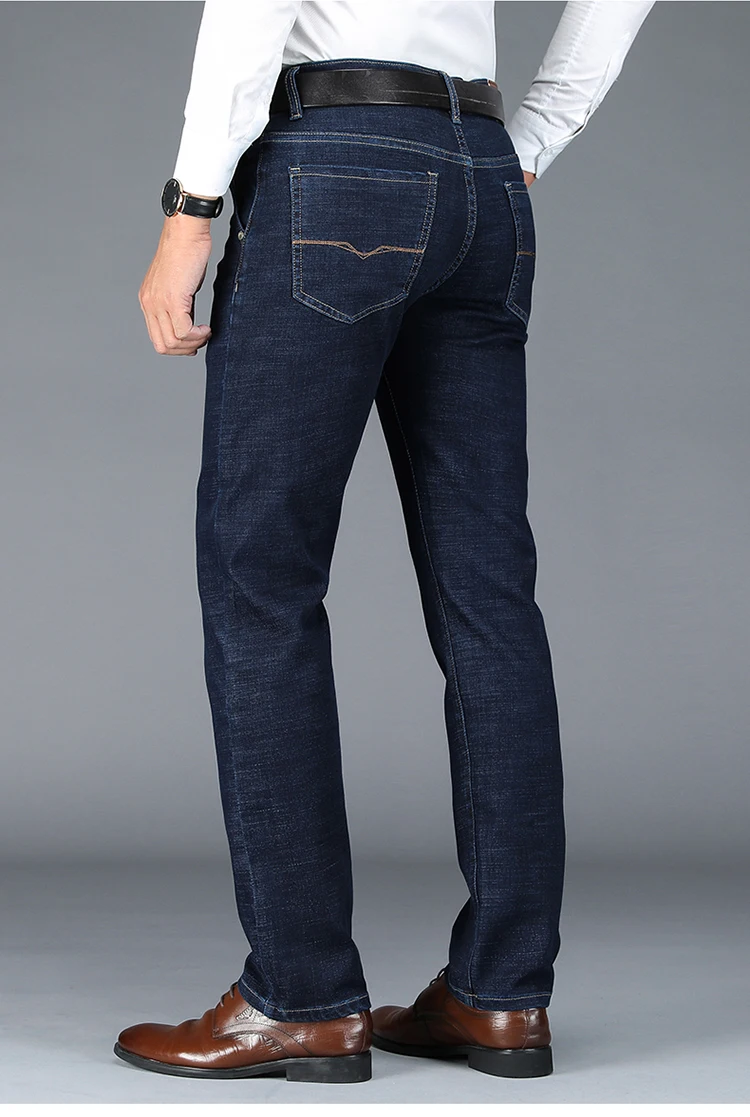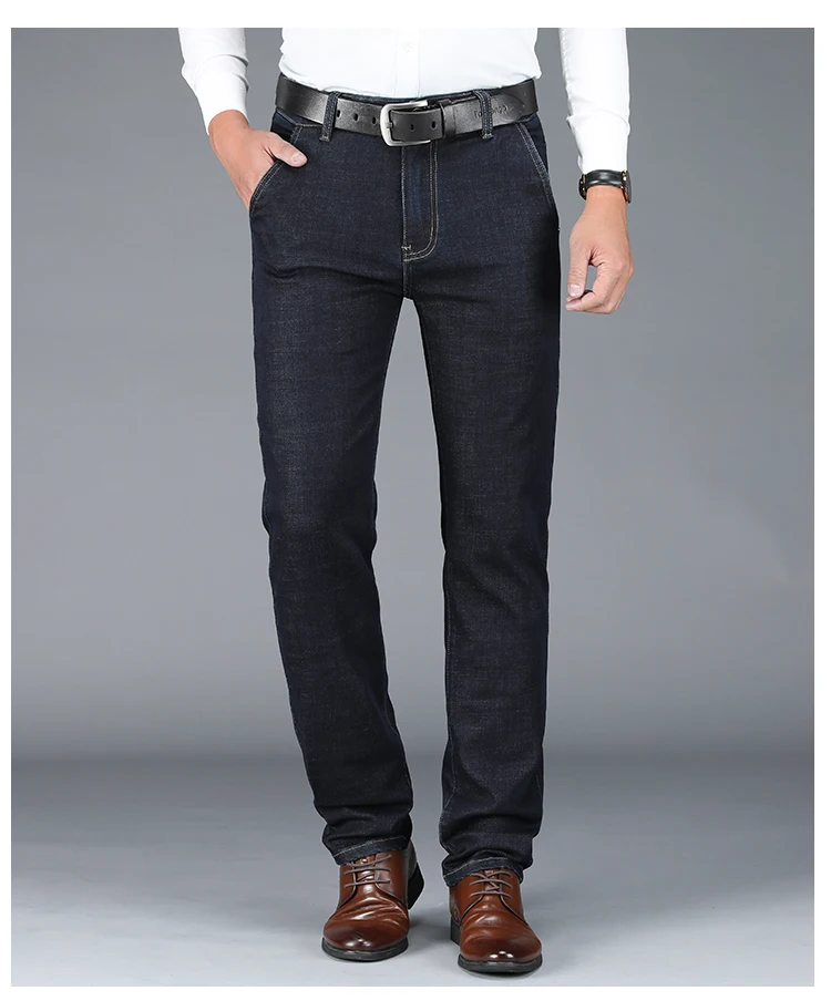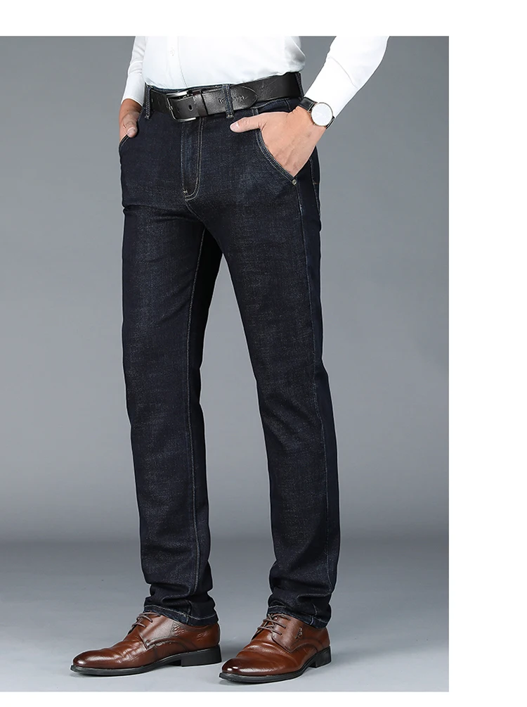 Классические мужские джинсы стрейч, Модные свободные прямые мужские джинсы, Брендовые повседневные брюки на осень и зиму