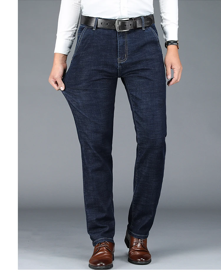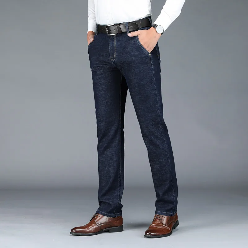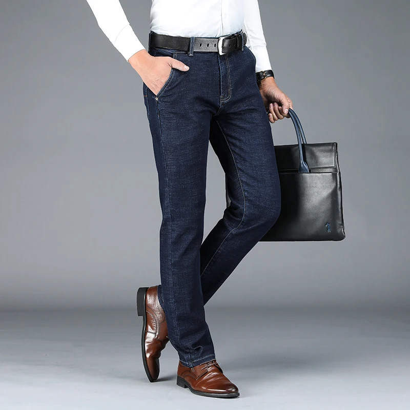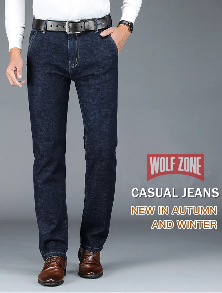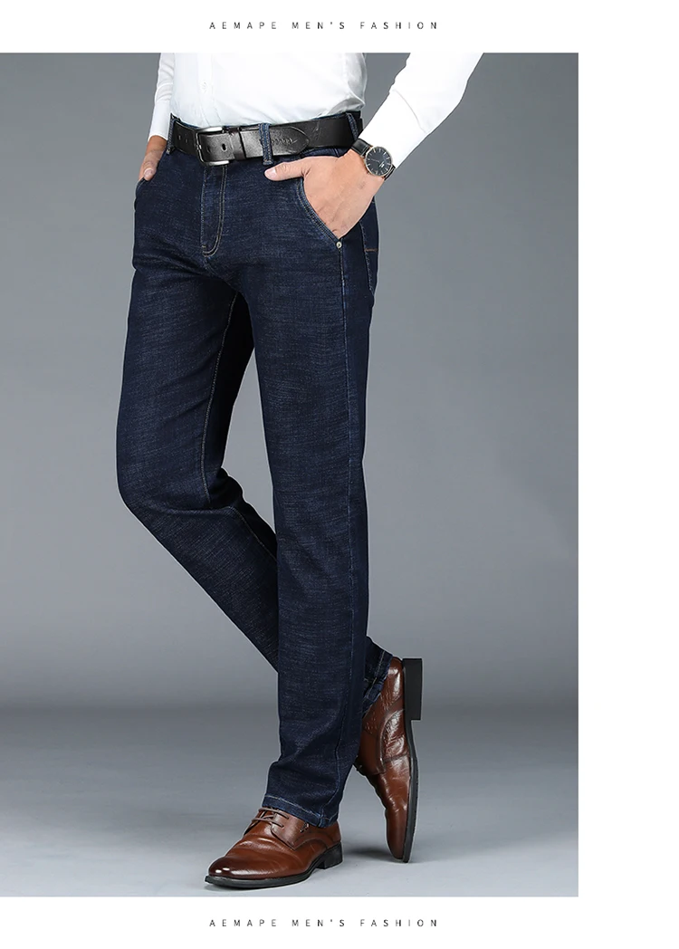 Классические мужские джинсы стрейч, Модные свободные прямые мужские джинсы, Брендовые повседневные брюки на осень и зиму