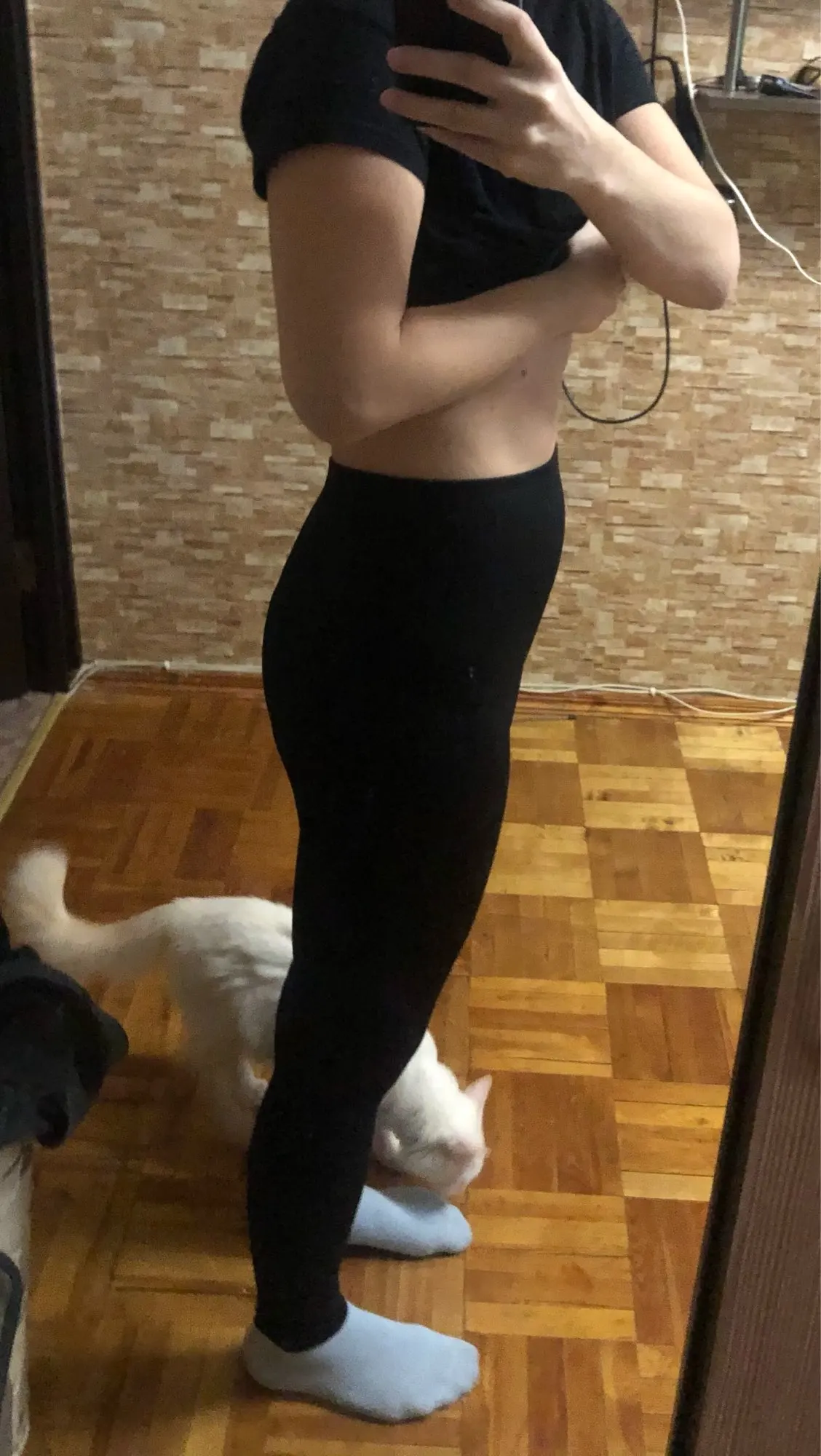 Я немного ошиблась с размером, на s взяла m. В целом не плохо, но можно было и поменьше. Ленинцы плотные, достаточно тяжело тянутся, трусы не просвечивают, я люблю такое качество лосин) плюс есть утягивающая резинка. Продавец положил подарочки)
