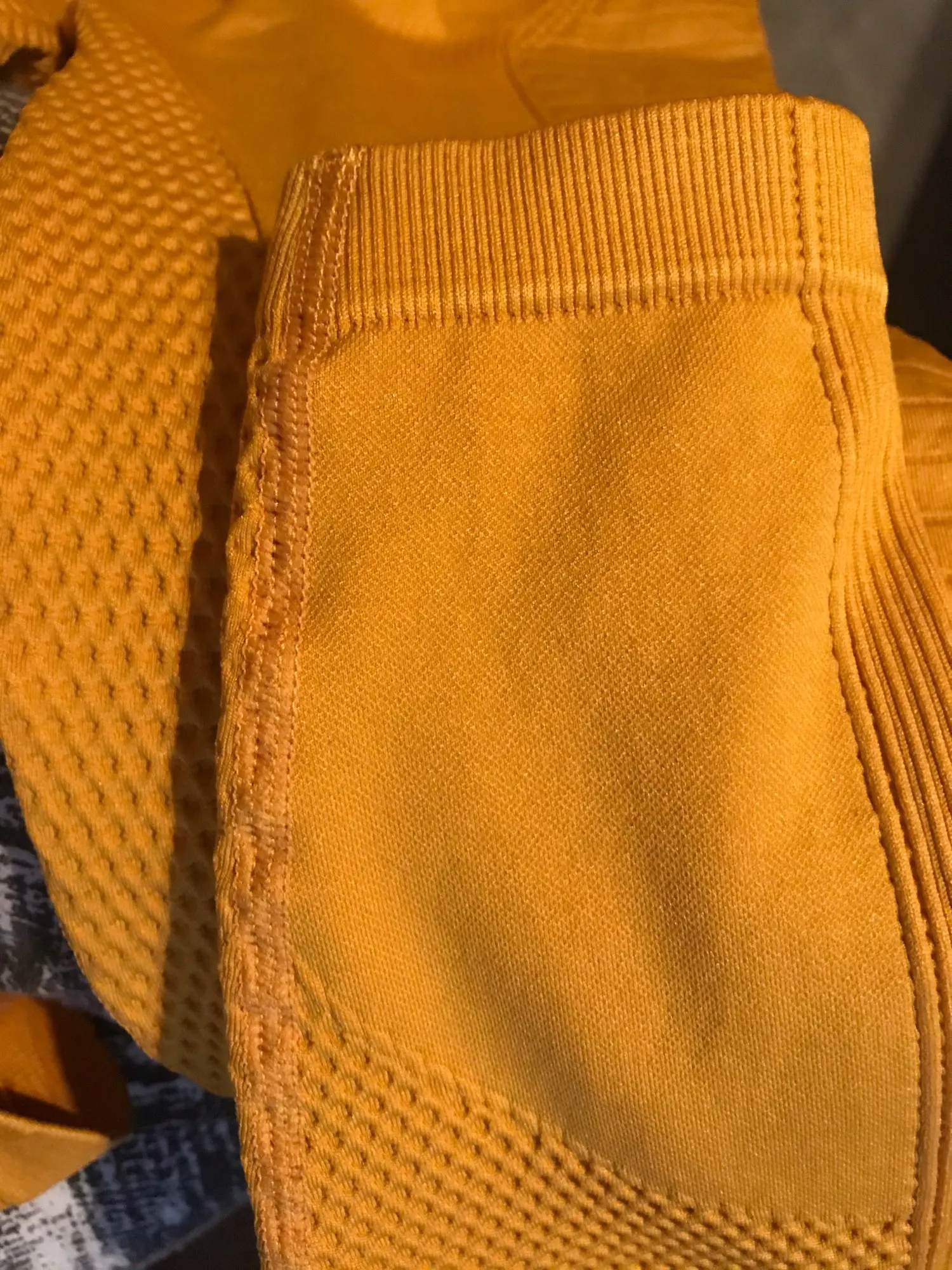 Отличная ткань, на российский М подошёл М идеально. Высокий пояс, комфортный, красивый рисунок, который зрительно моделирует фигуру, чуток утягивает. При занятиях пота на легинсах не видно ) не просвечивает. Идеальные, особенно, за эту цену) доставка в Томск месяц, отправили быстро. С продавцом не общалась