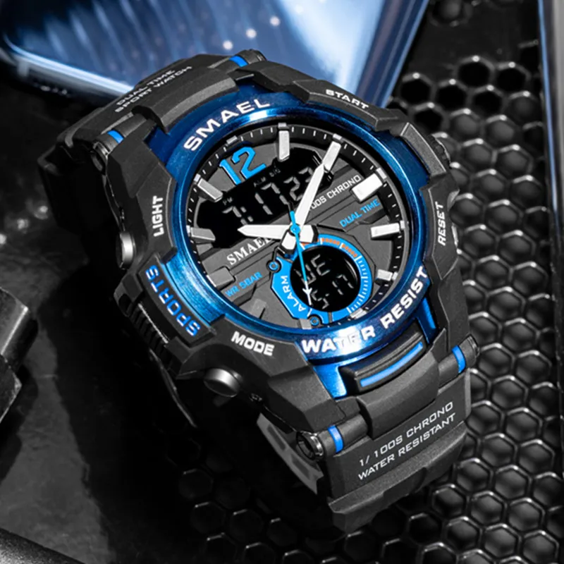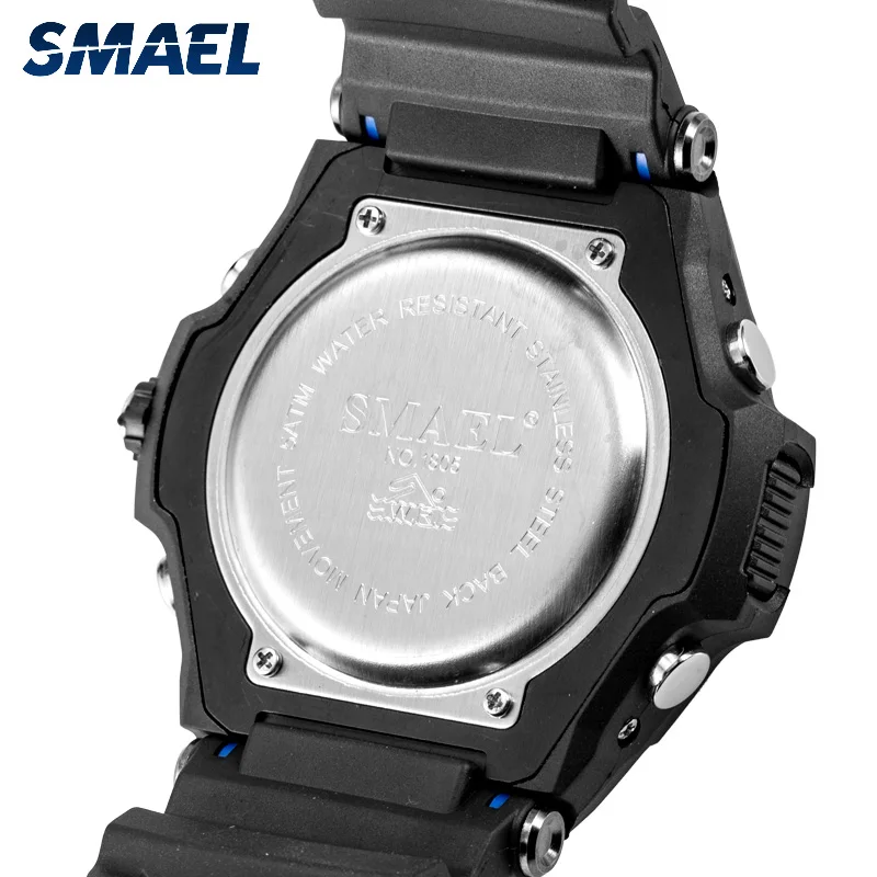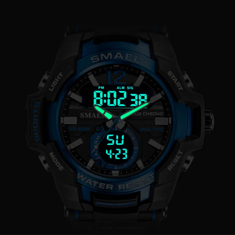 Часы наручные SMAEL Мужские кварцевые Светодиодные, модные цифровые водонепроницаемые ударопрочные в стиле милитари