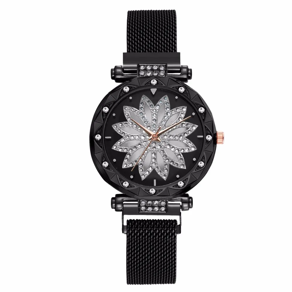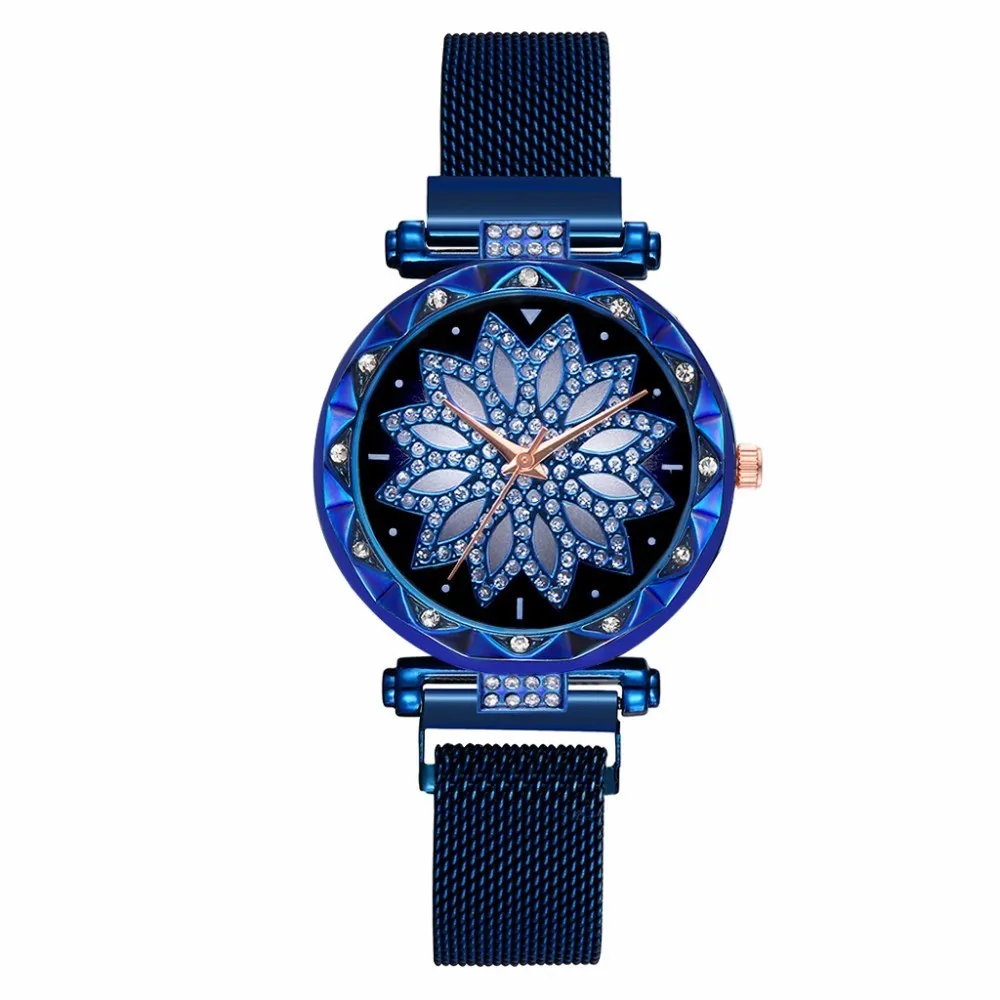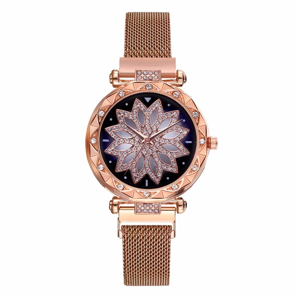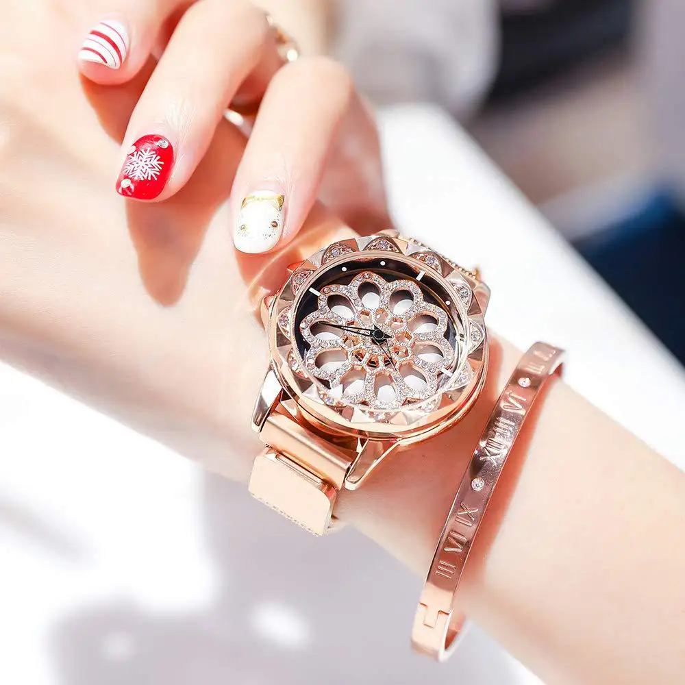 Часы женские кварцевые, с магнитным браслетом и вращающимся циферблатом под розовое золото