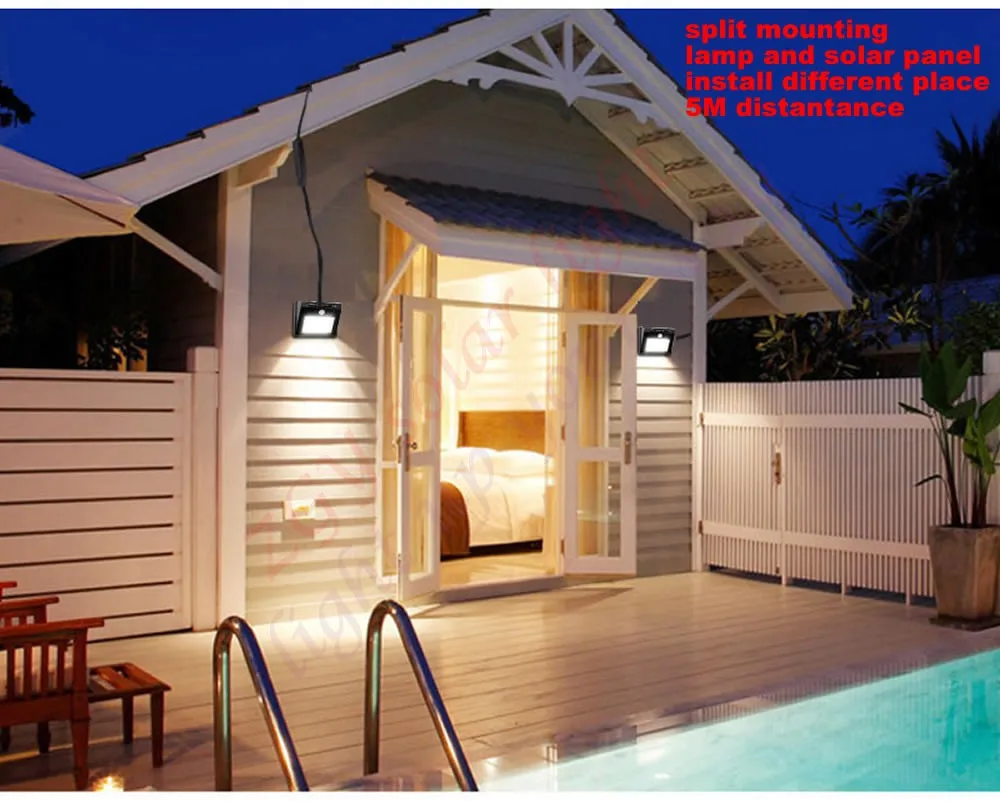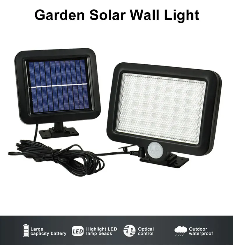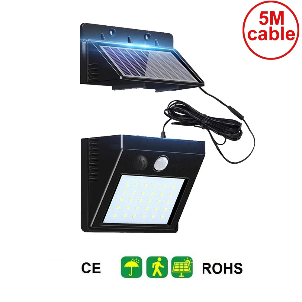 56 светодиодный светильник на солнечных батареях на открытом воздухе, садовый светильник на лужайке, PIR датчик движения, настенный светильник, водонепроницаемый инфракрасный датчик, светильник, разделенная солнечная панель, 5 м кабель