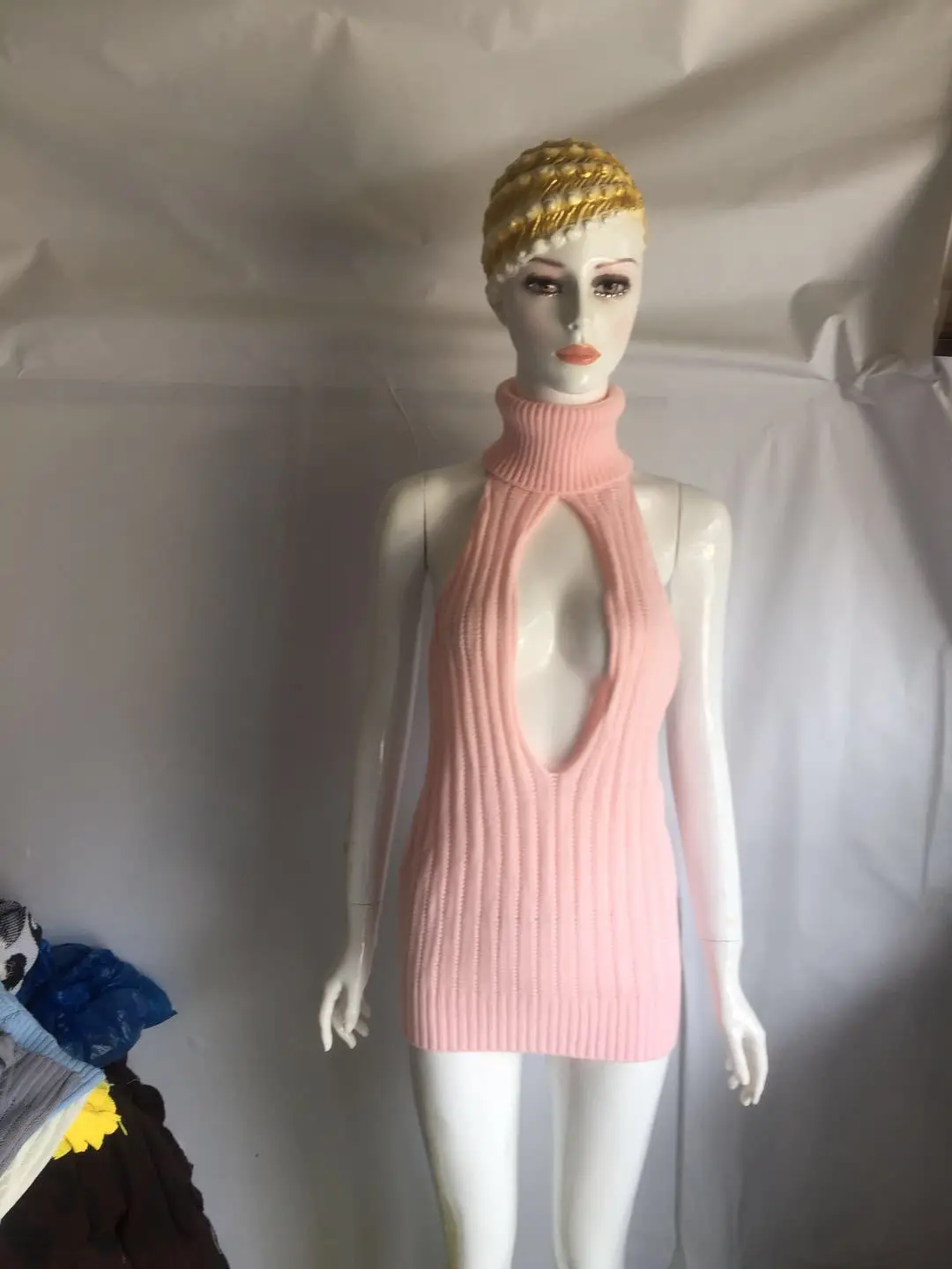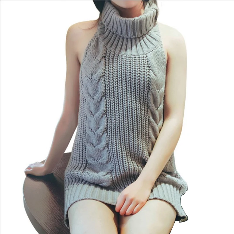Аниме костюмы сексуальный женский весенний свитер с открытой спиной девственницы убийца водолазка с открытой грудью полые вязаные пуловеры женский