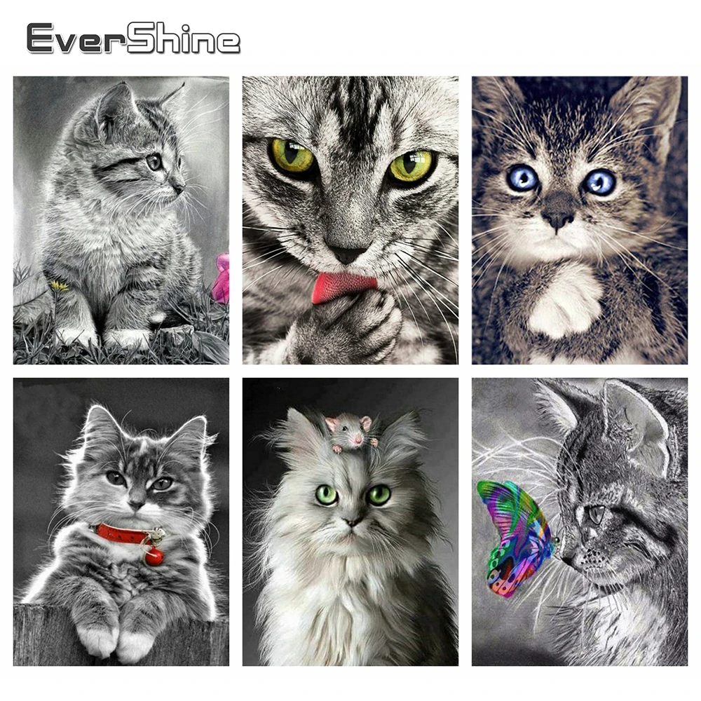 Evershine алмазная вышивка кошки мозаика картина животные Алмазная мозаика Черный и белый вышивка крестиком декор для дома