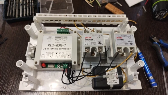Модуль переключателя с двумя релейными устройствами, GSM-сигнализация с SMS-контроллером KL2-GSM-T, с датчиком температуры светильник освещения, выращивания рыбных прудов, складских помещений