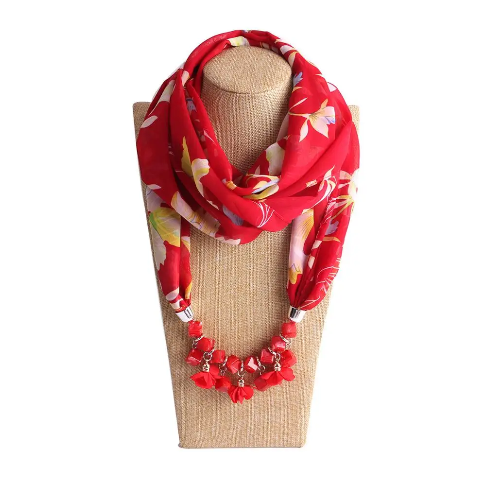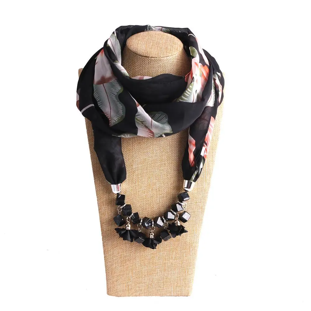 Шифоновый шарф с принтом, квадратный шарф из смолы, Цветочные Подвески, ожерелье, шарф, Модная бижутерия, бесконечный шейный платок, фуляр