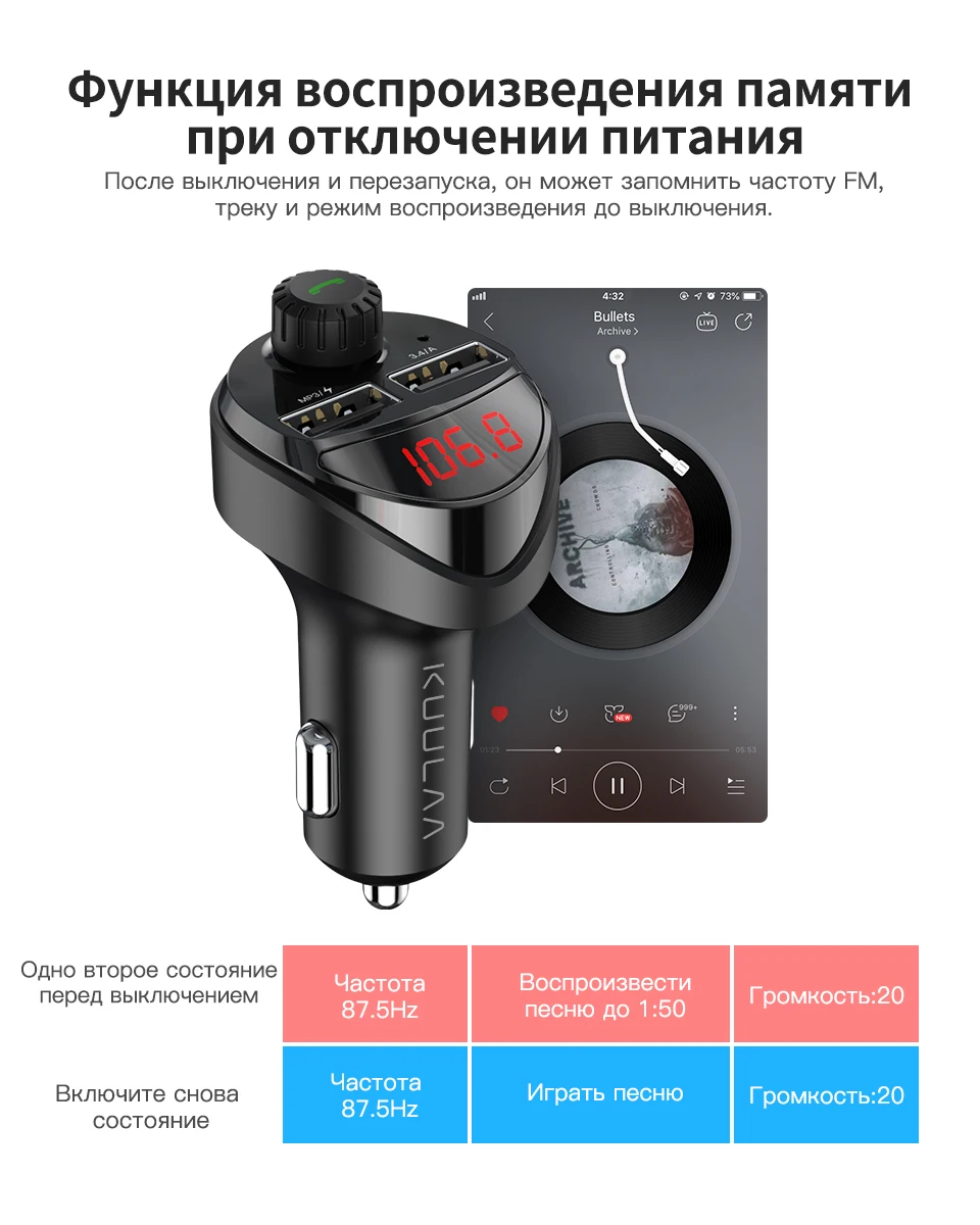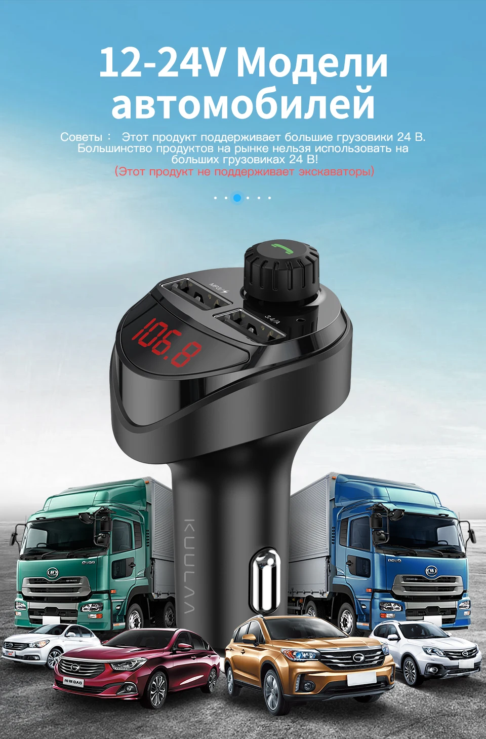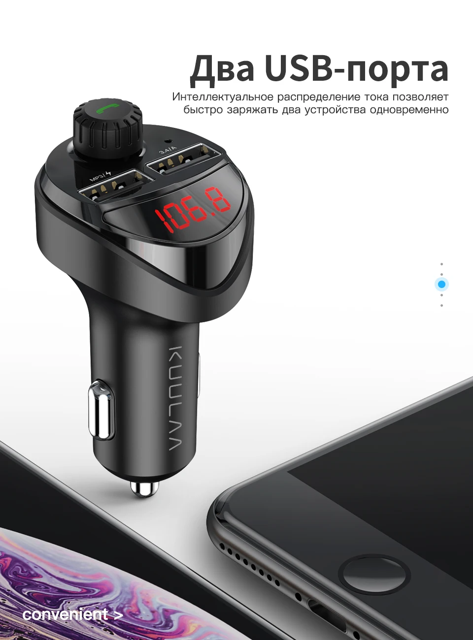 Автомобильное зарядное устройство KUULAA с FM-передатчиком, Bluetooth, mp3-плеером, USB-зарядным устройством для автомобилей, адаптер для TF-карты, автомобильный комплект, 3,4 А, двойное быстрое зарядное устройство для