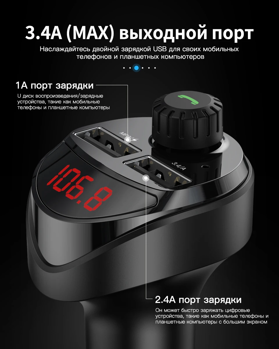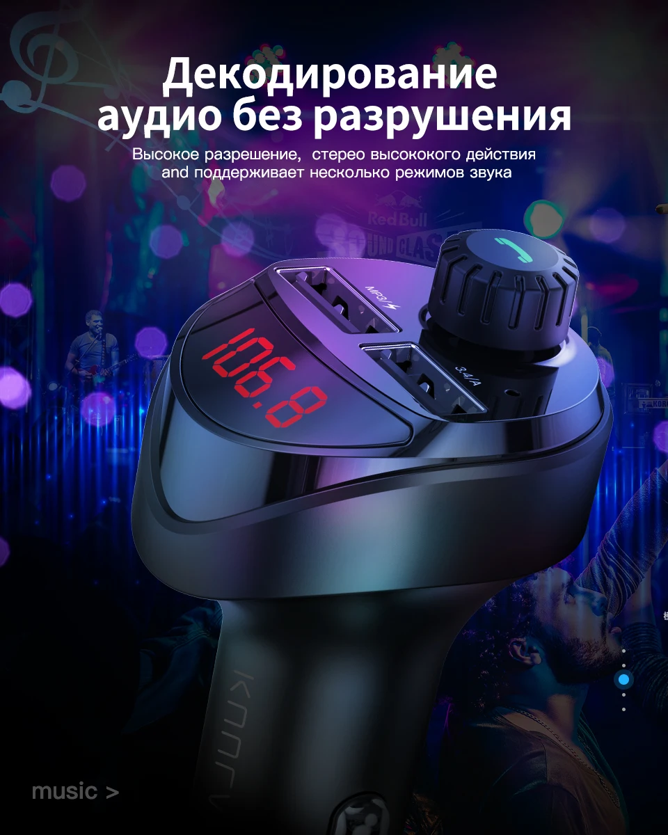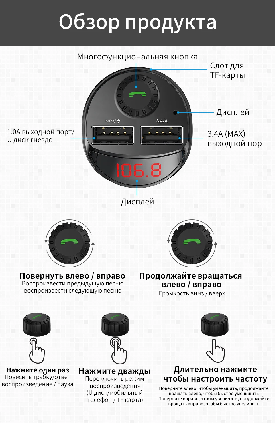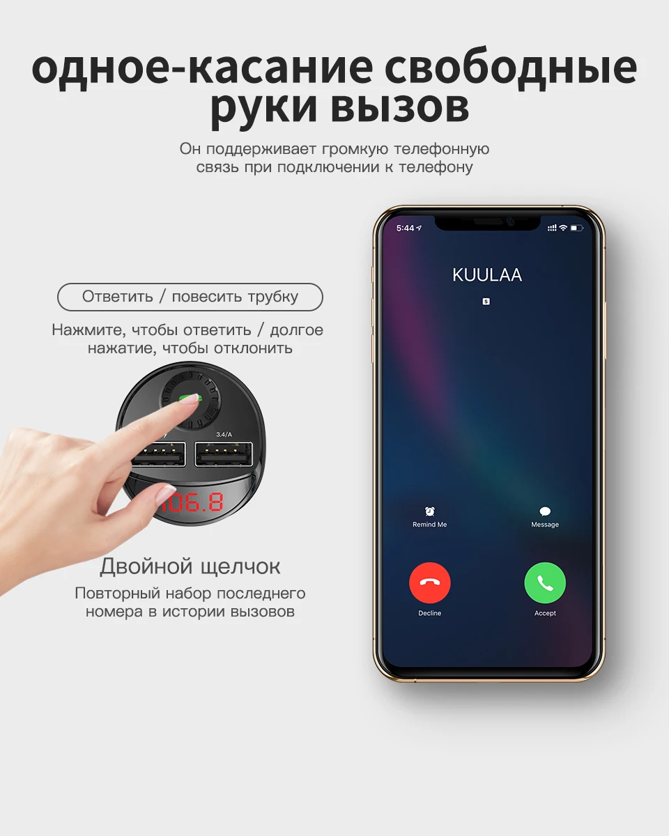 Автомобильное зарядное устройство KUULAA с FM-передатчиком, Bluetooth, mp3-плеером, USB-зарядным устройством для автомобилей, адаптер для TF-карты, автомобильный комплект, 3,4 А, двойное быстрое зарядное устройство для