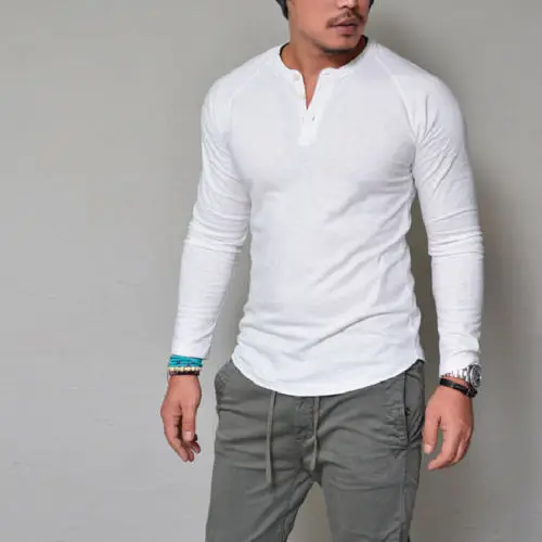 Футболка мужская облегающая с длинным рукавом и воротником-стойкой