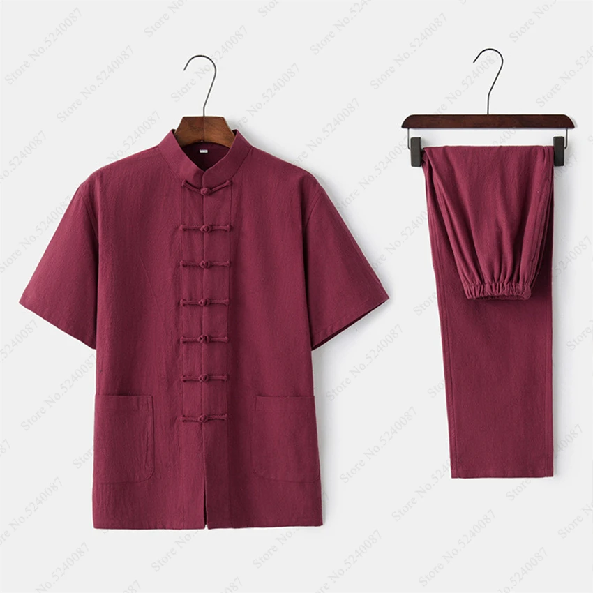 Традиционный китайский комплект одежды для кунг-фу, костюм Тан, Мужская льняная футболка ханьфу, Восточная футболка, штаны, блузка для Тай-Чи, униформа для ушу