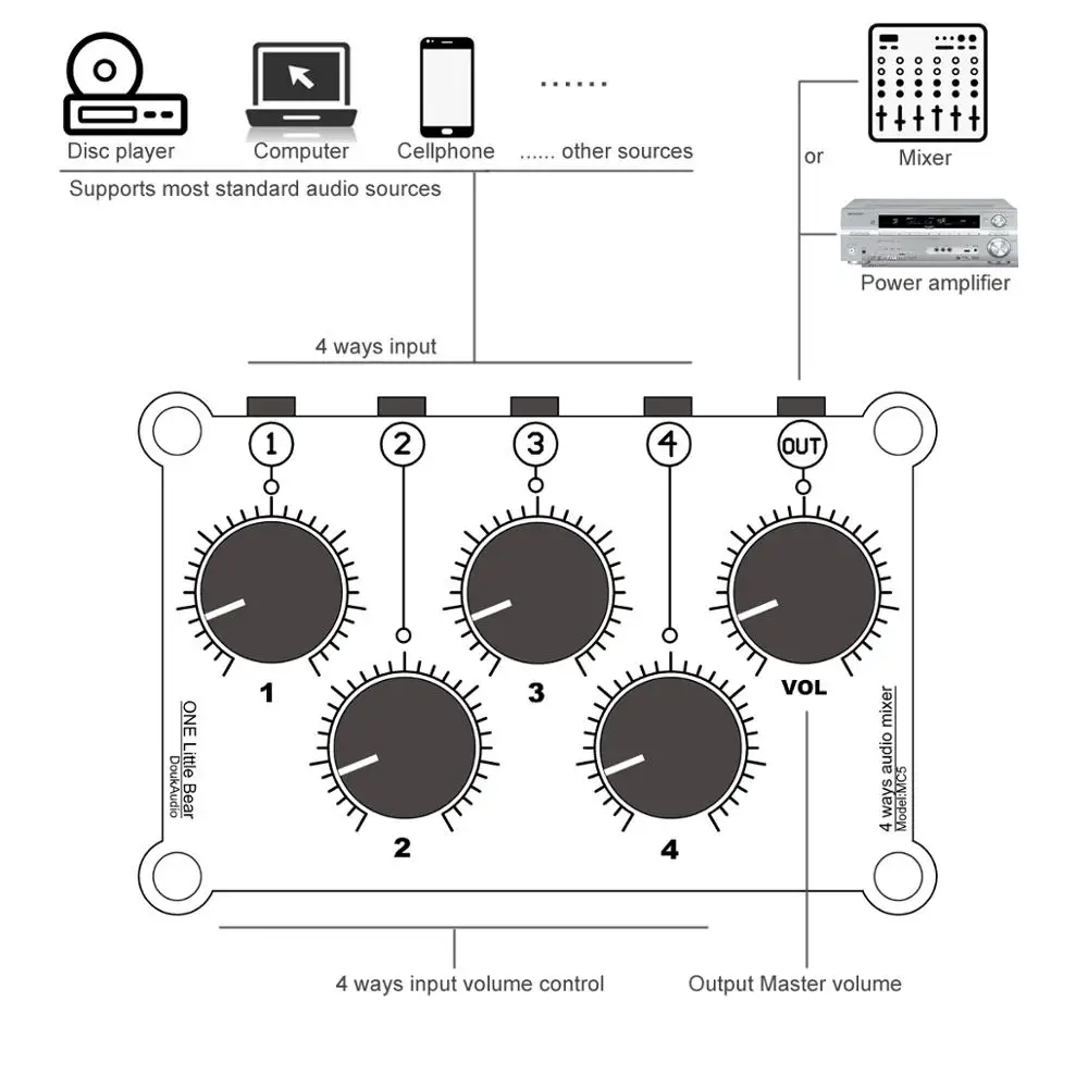 Портативный стерео 4-канальный аудио микшер Mini MC5 пассивная студийная консоль для записи