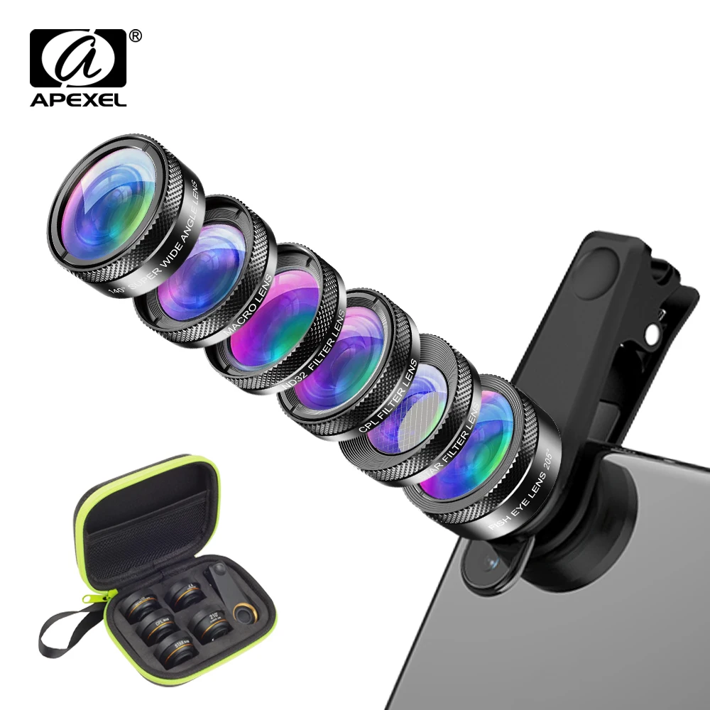 APEXEL новый комплект объективов для камеры телефона 6 в 1 объектив...