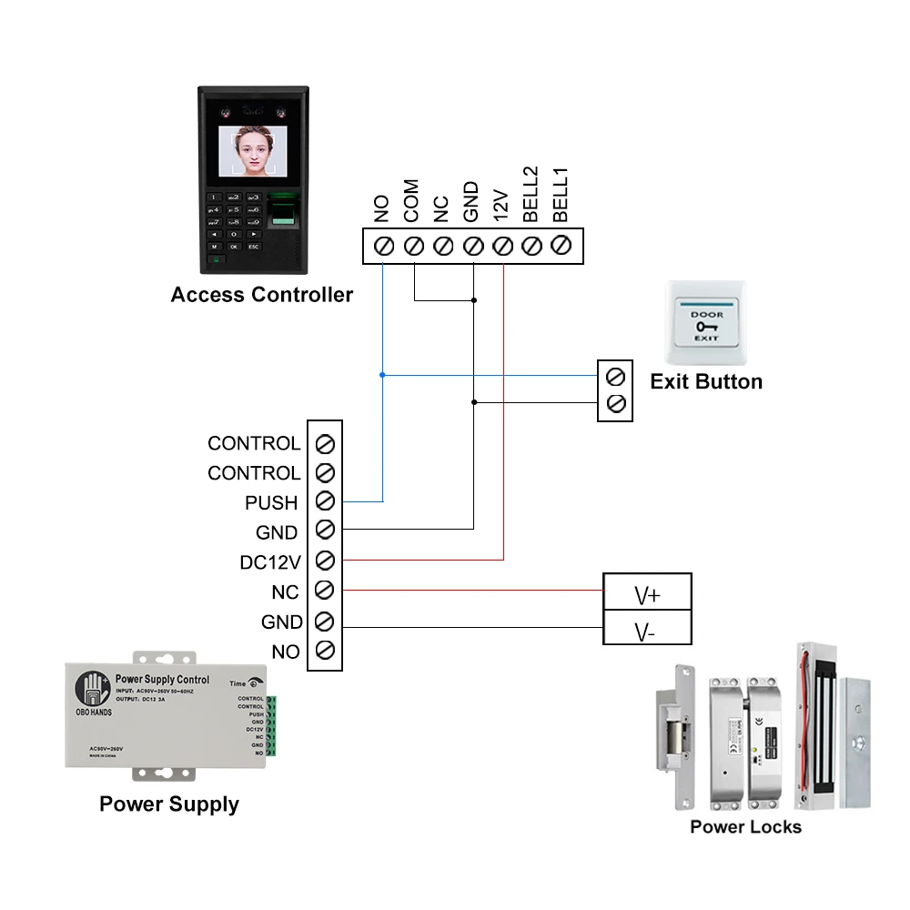 Посылка включает в себя: кнопочную панель управления доступом + блок питания + электрический замок удара + кнопку выхода