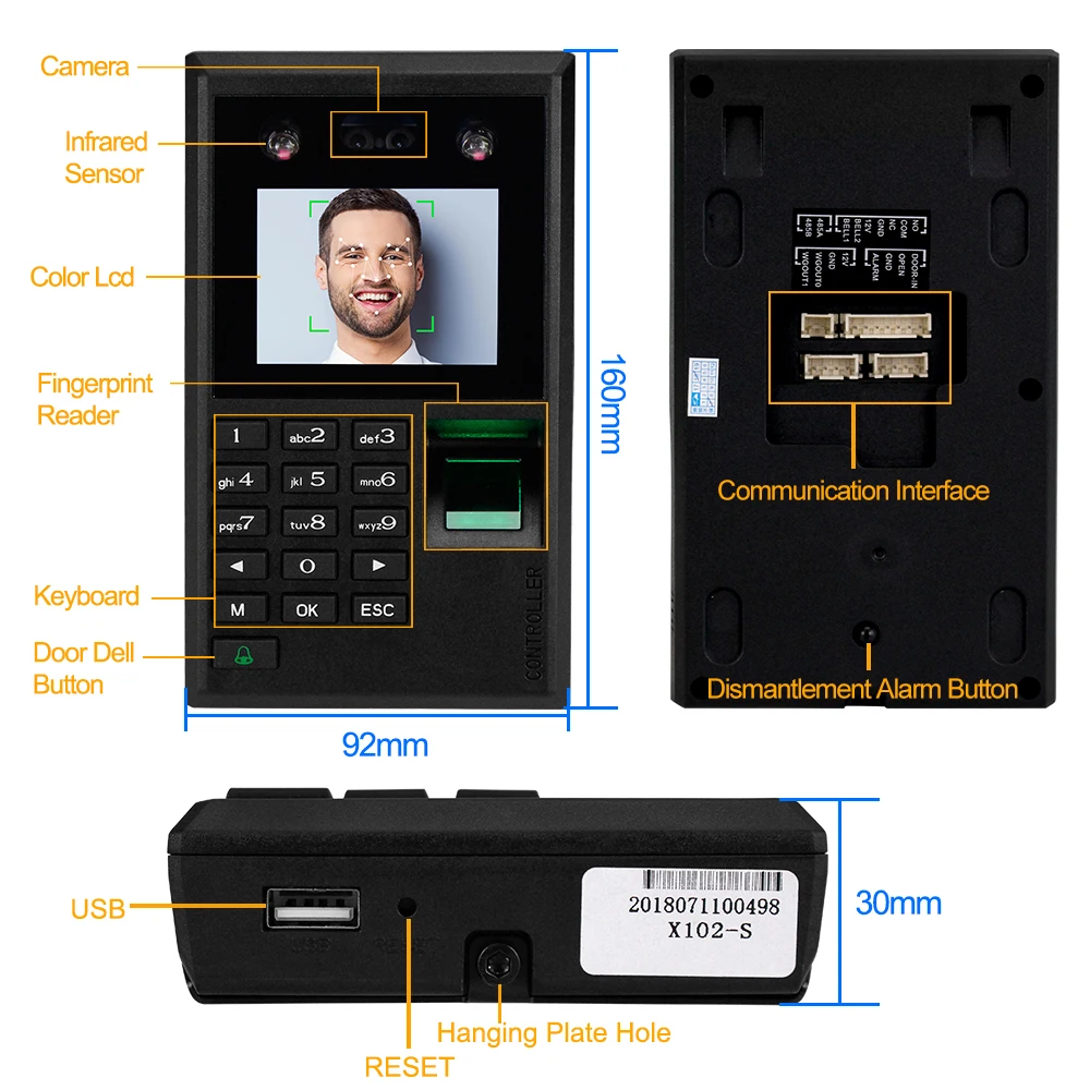 User Capacity500 face, 1500 fingerprints, 500 password, 100,000 log