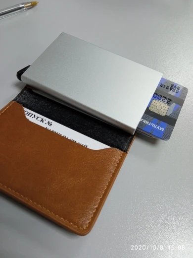 Отлично подходит для кармана, Вмещает 5 карт, но при ежедневном использовании просто царапает карты из-за трения. Не подходит для CNH. Просто сгибать кусок. Супер быстрая