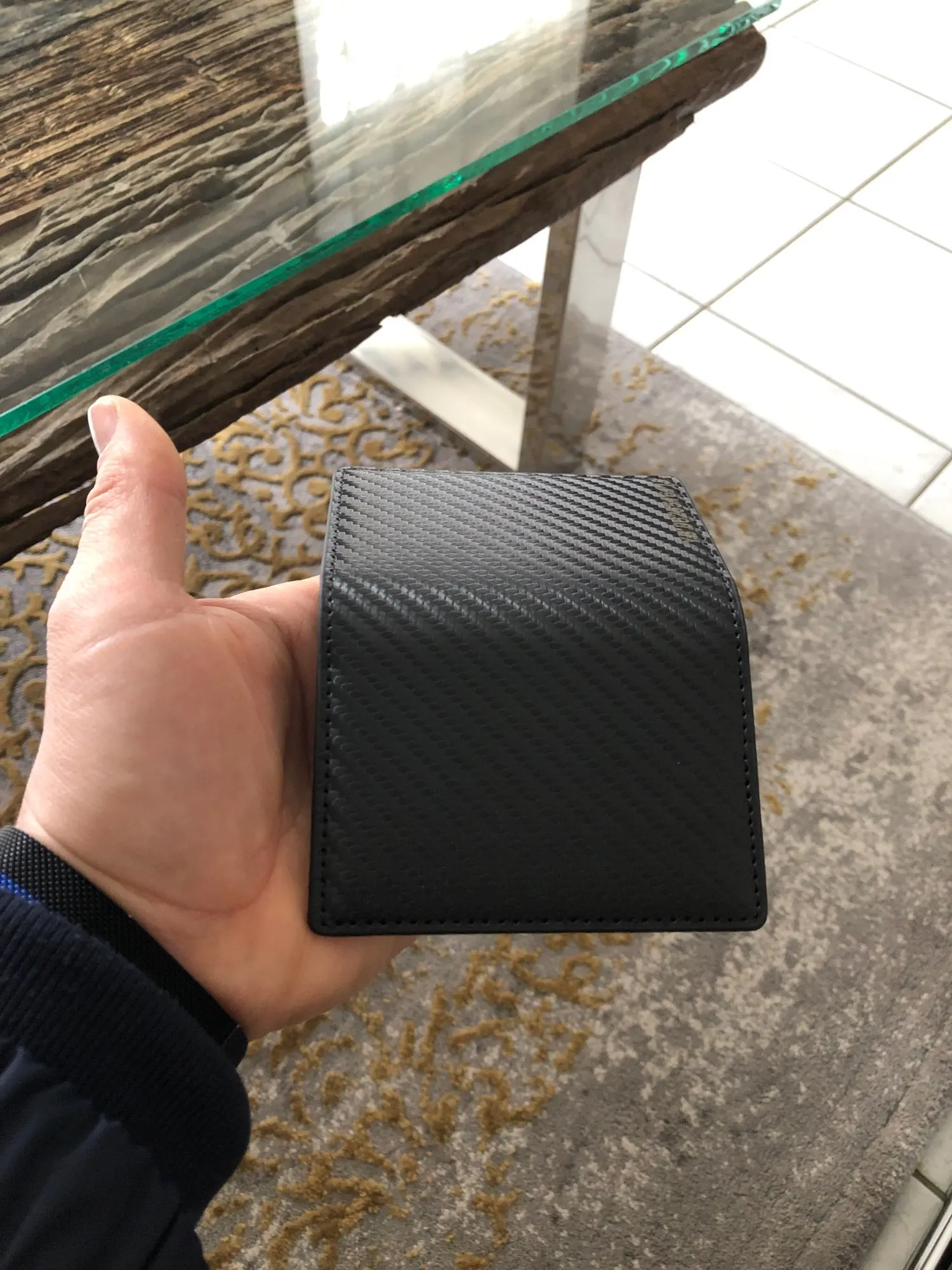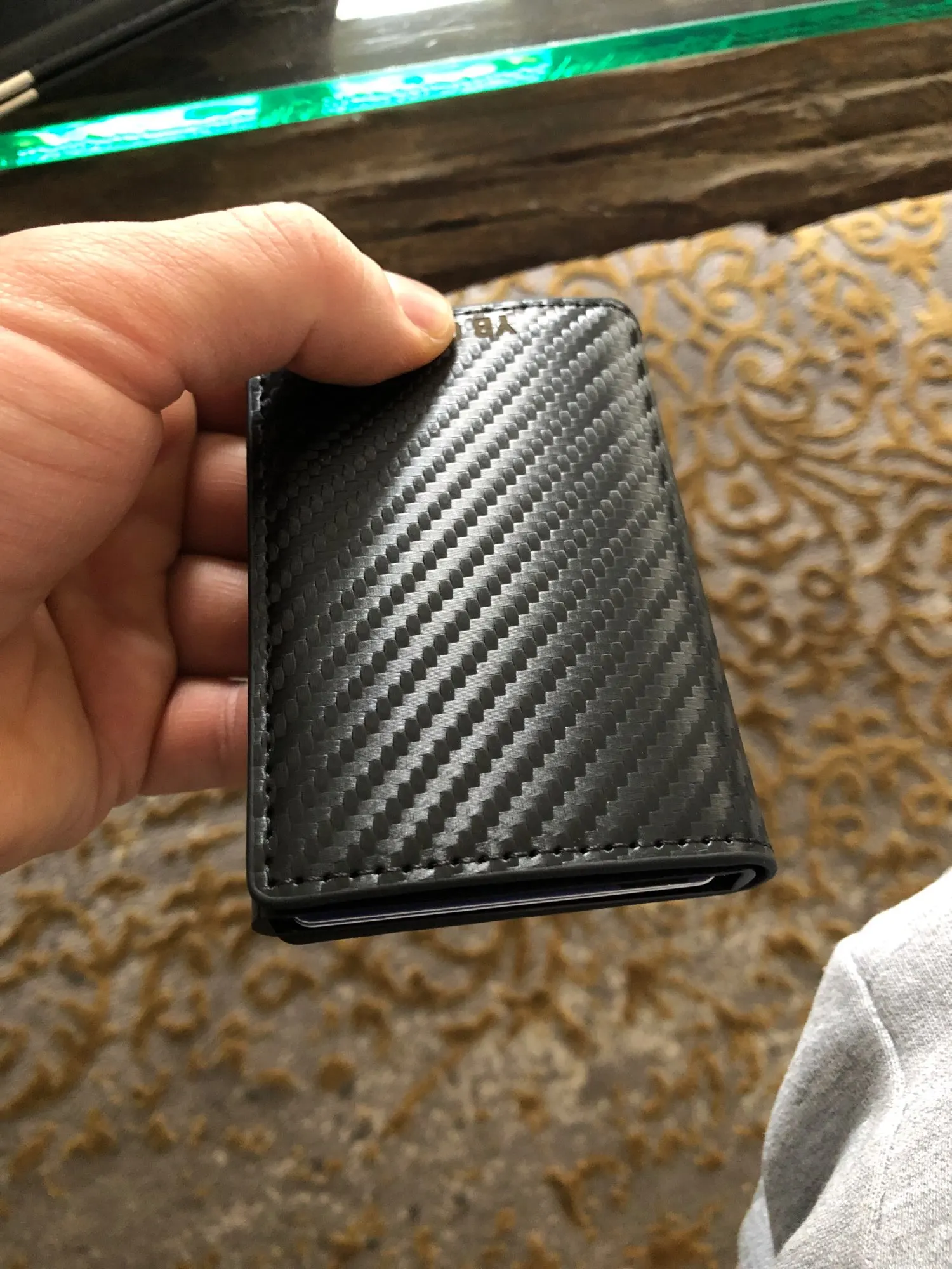 DIENQI карбоновый держатель для карт, кошельки для мужчин, бренд Rfid, черный, волшебный, трехслойный кожаный тонкий мини кошелек, маленькая сумка для денег, мужские кошельки