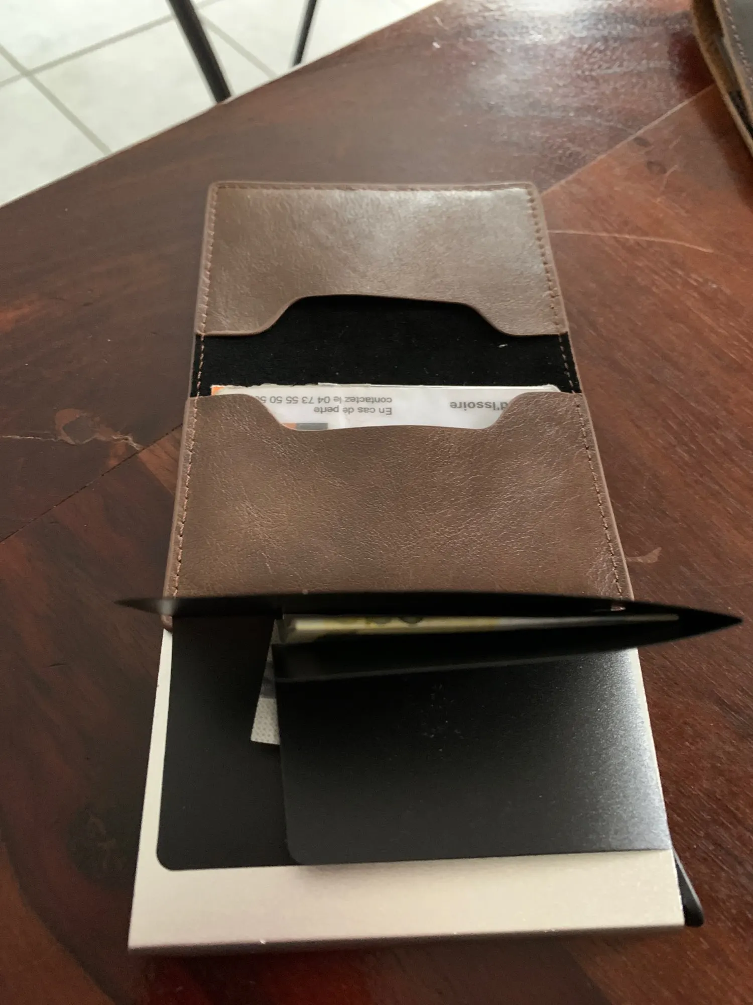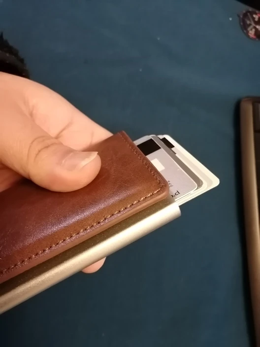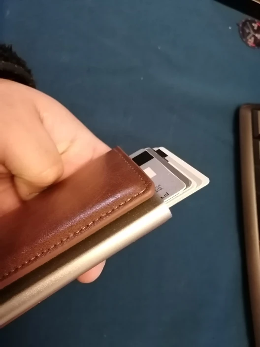 стильная штука. Сначала испугался, что карты держаться не будут, а на самом деле отлично держаться,выскакивают веером, размещается внутри до 5 карт.